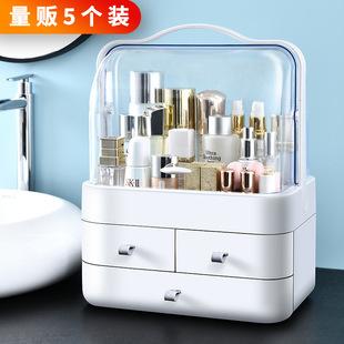 | [Paquete de 5] Caja de almacenamiento de cosméticos para dormitorio, escritorio, a prueba de polvo, luz para el hogar, tocador de lujo, estante para productos de cuidado de la piel |