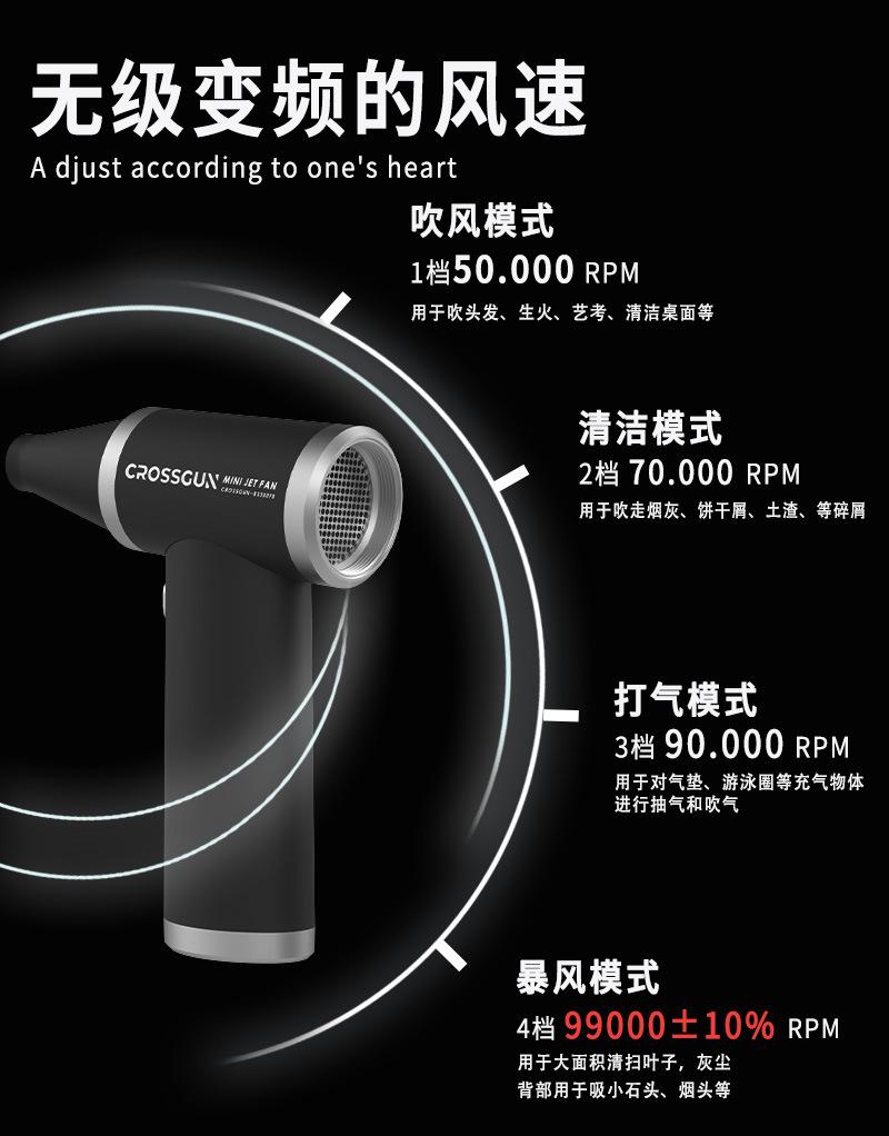 Ventilador turbo Crossgun Storm B3 de alta calidad, portátil, para exteriores, con eliminación de polvo, protección ambiental, ahorro de energía, ajustable.