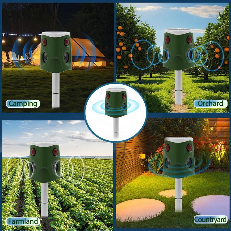 Repelente de animales transfronterizo de gran venta con sensor infrarrojo de 360 grados, repelente de aves, alarma impermeable para exteriores y repelente de ratas.