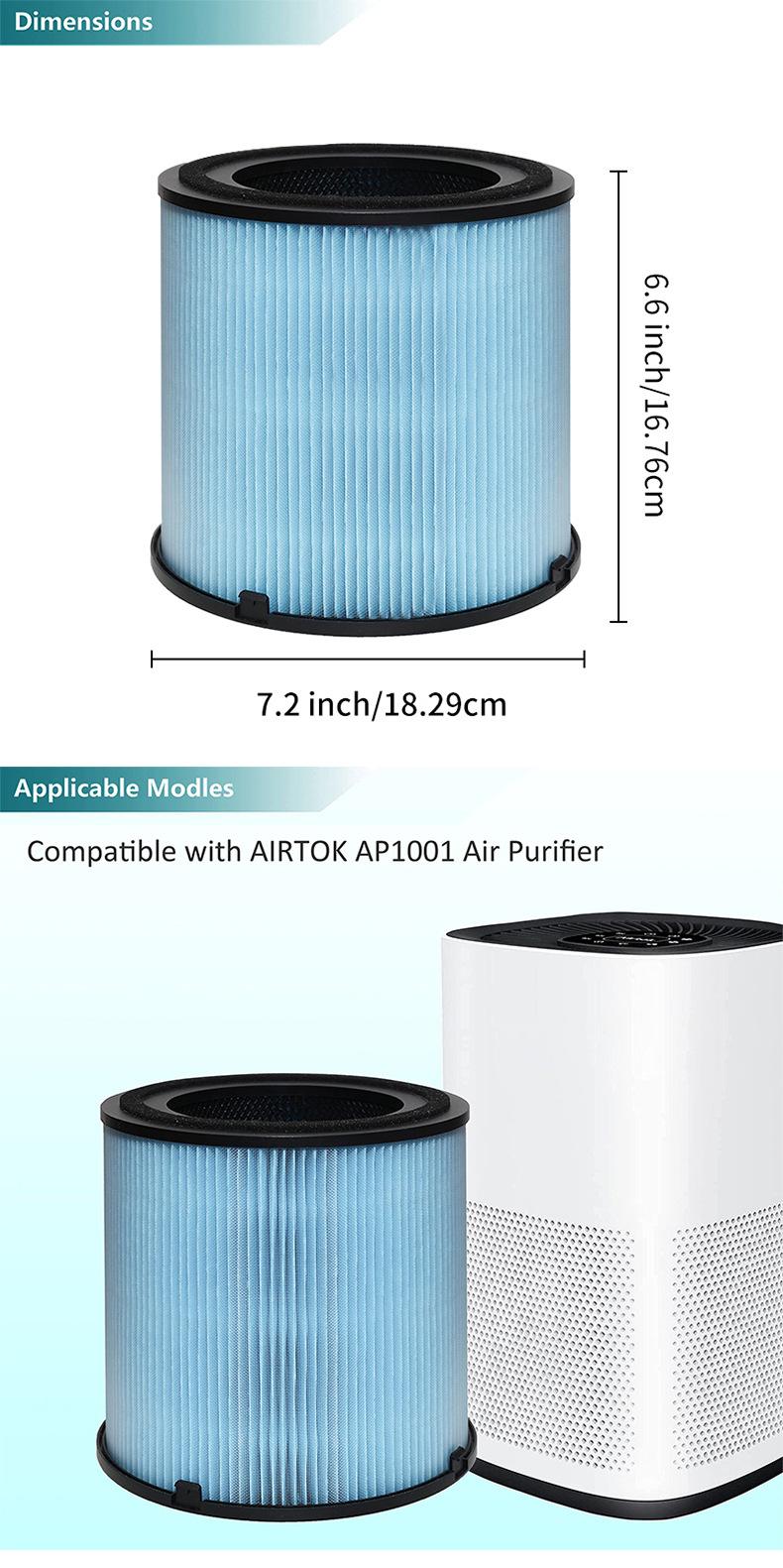 Adecuado para el filtro purificador de aire AIRTOK AP1001, filtro HEPA de carbón activado de dos piezas, desodorización y eliminación de polvo.