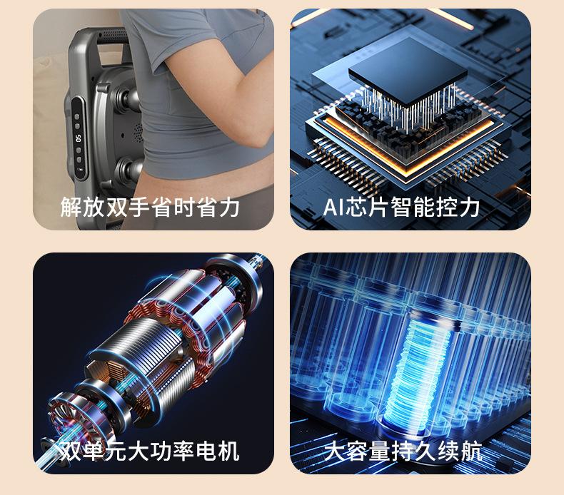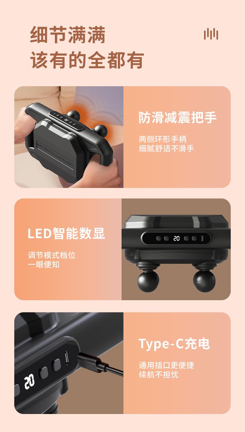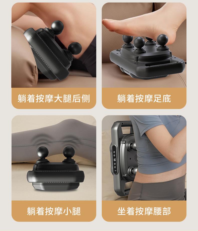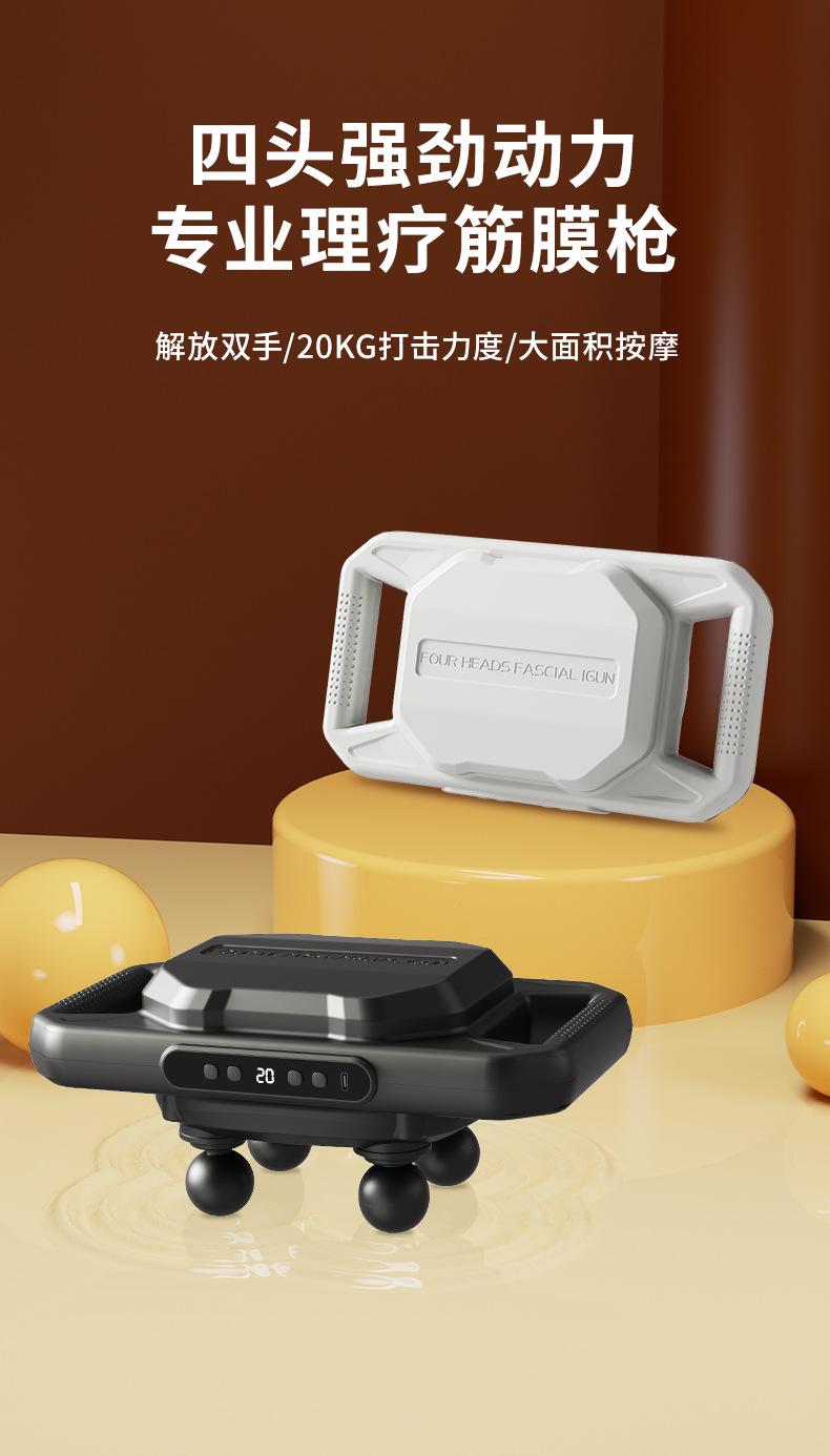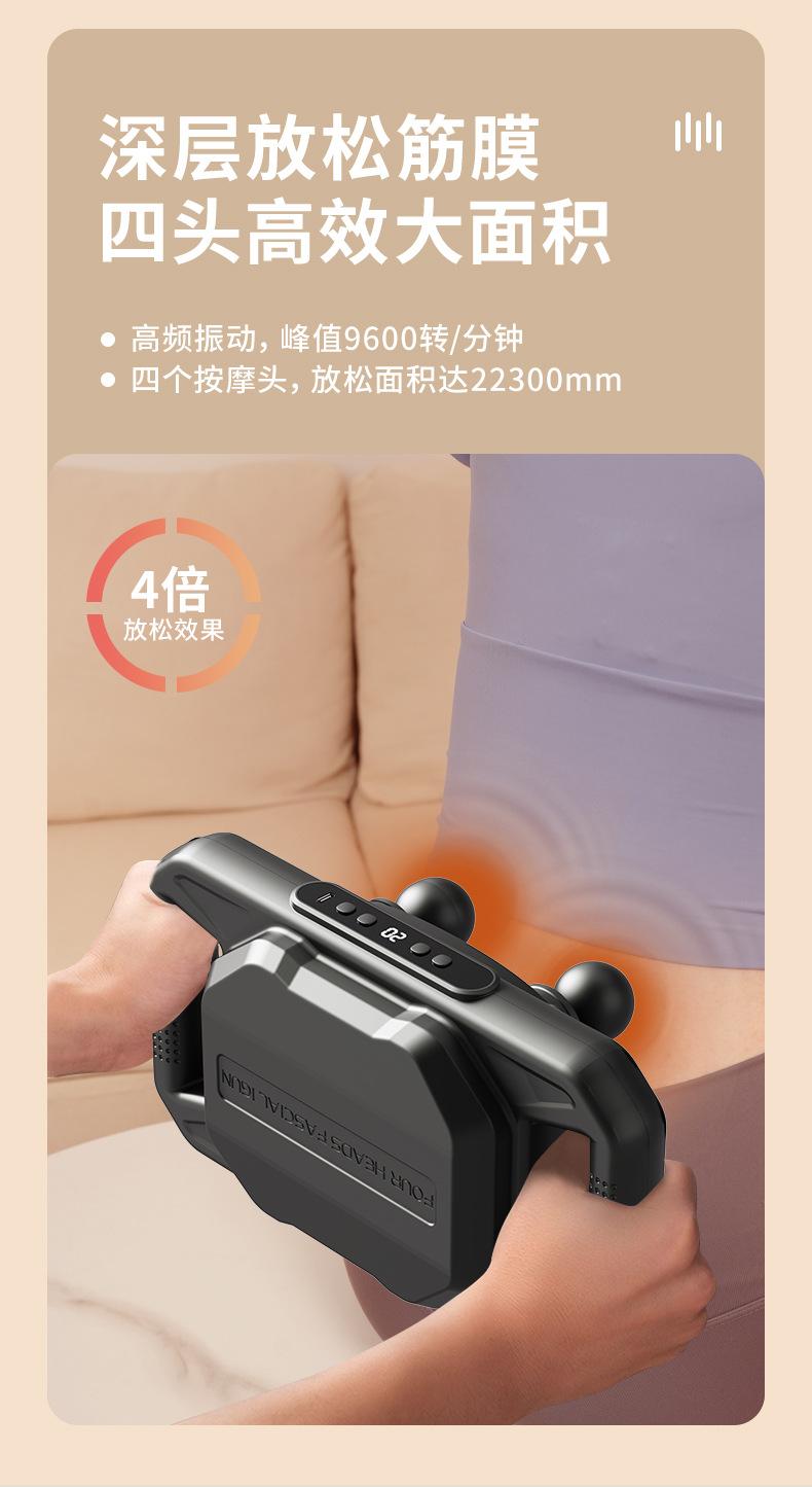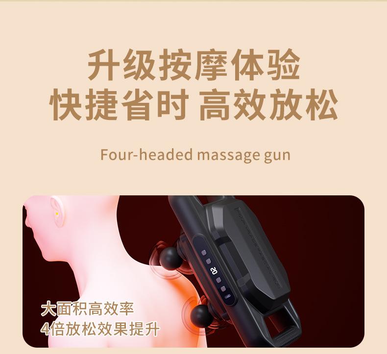 Pistola de fascia de cuatro cabezales transfronteriza, masajeador de relajación muscular inalámbrico multifuncional para el hogar, pistola de masaje de pantorrillas con vibración de alta frecuencia