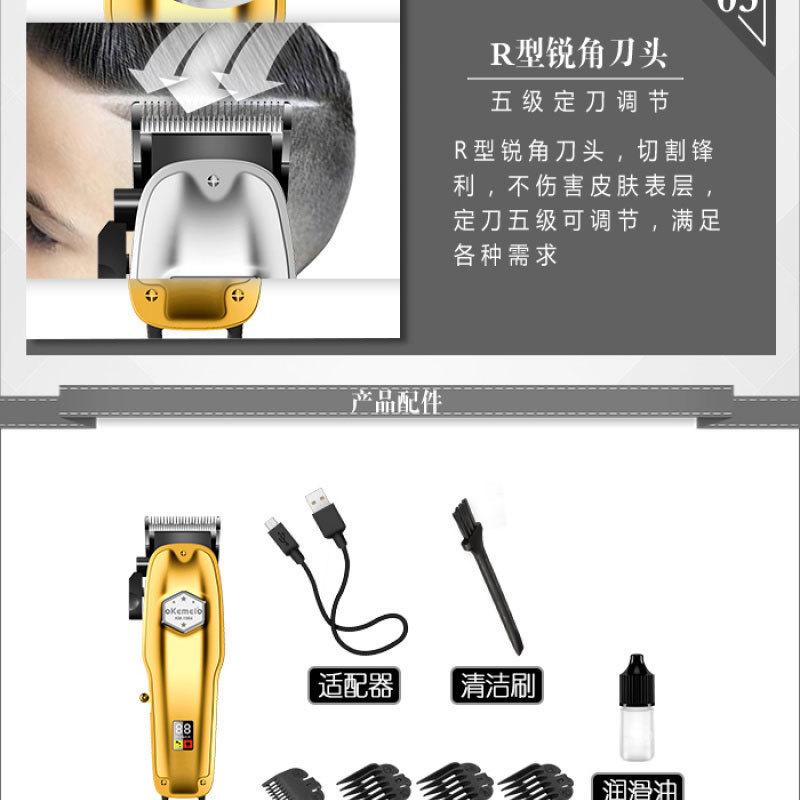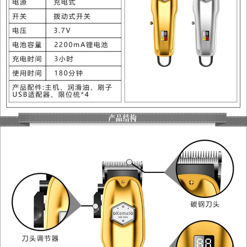Cortadora de pelo Comey KM-1984 PG, cuerpo de metal, pantalla digital LCD, afeitadora eléctrica, cortadora de pelo, peluquería dedicada