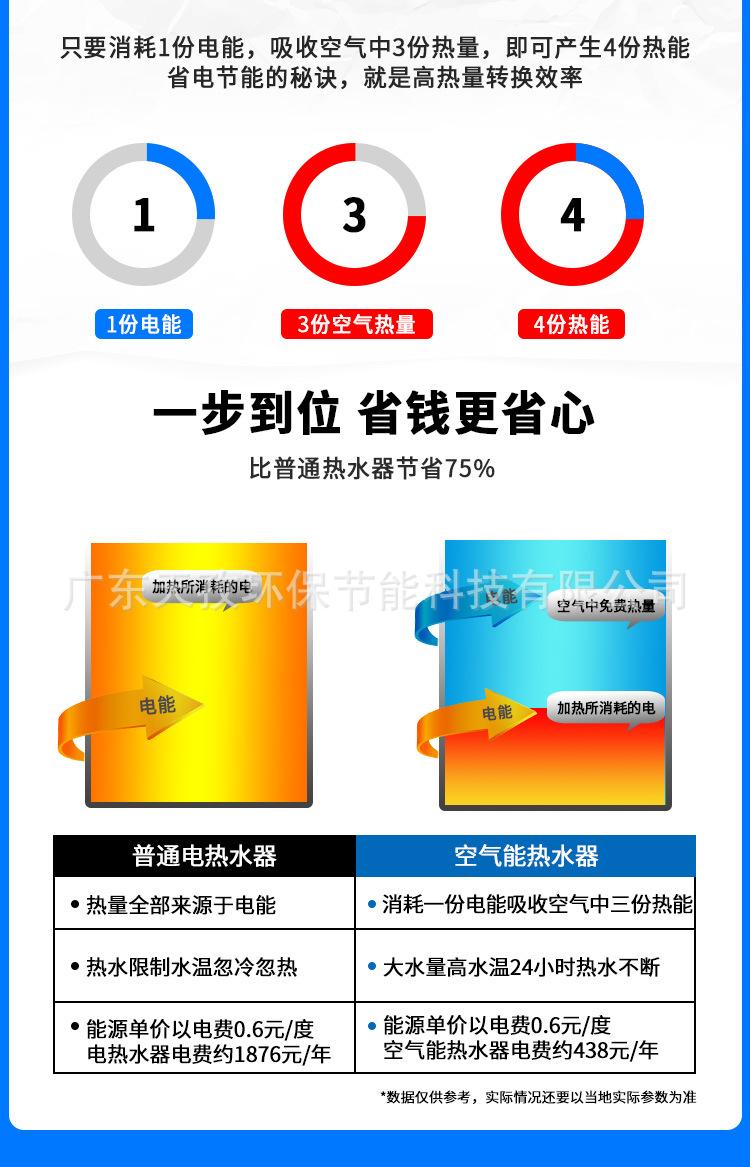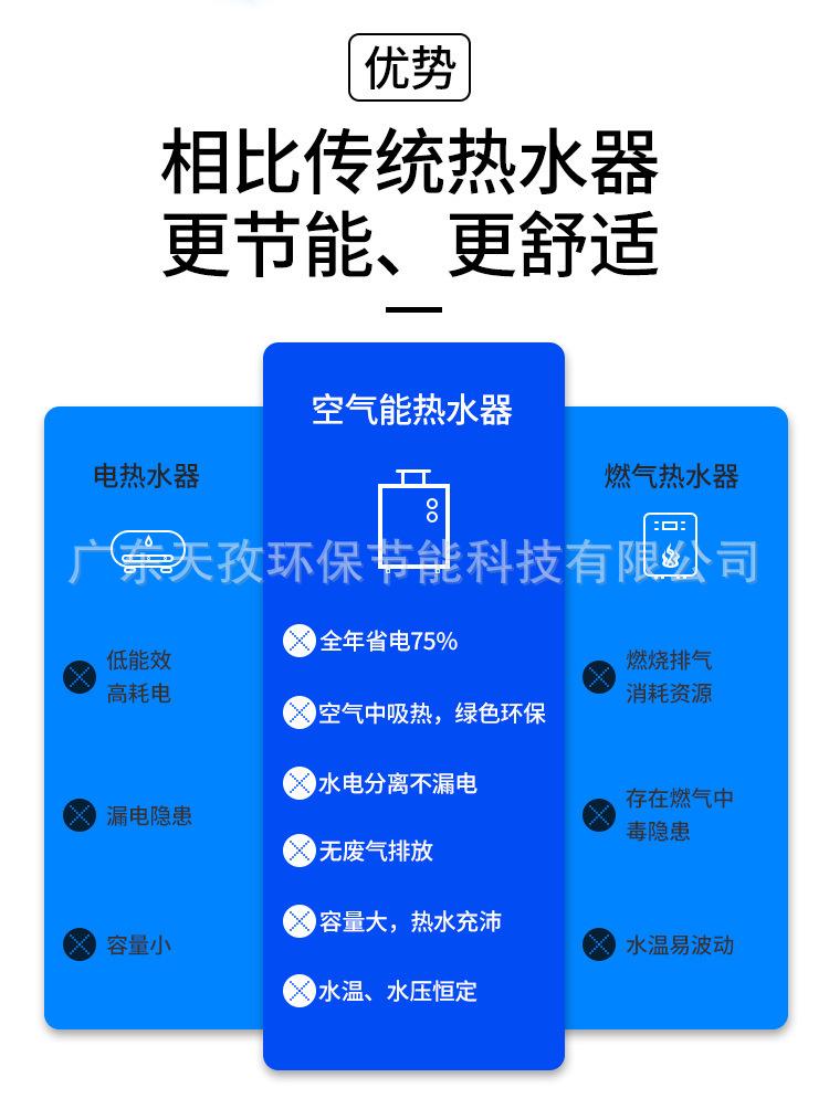Bomba de Calor de Energía Aérea Comercial Calentador de Agua Todo en Uno Hotel Posada Escuela Hospital Fábrica Sitio de Construcción Temperatura Constante Conversión de Frecuencia