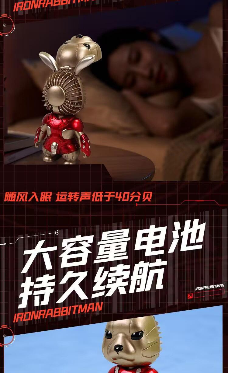 El ventilador Hombre Conejo de Acero es un producto creativo. Su diseño de apariencia combina elementos de anime de dibujos animados y forma de conejo, presentando un estilo único y lindo. No solo eso, el ventilador Hombre Conejo de Acero también tiene una fuerte potencia de viento y calidad estable, lo que puede brindar una experiencia fresca duradera. Puedes ponerlo en tu escritorio o junto a la mesita de noche y dejar que te acompañe en cada noche calurosa. Además de la sensación de frescura, la linda forma del ventilador Hombre Conejo de Acero también te brindará relajación y placer. Entonces, ya sea que te guste el estilo de anime de dibujos animados o los conejos lindos, el ventilador Hombre Conejo de Acero es una elección que no te puedes perder. ¡Ven y cómpralo, lleva a tu Hombre Conejo de Acero contigo para hacer el verano mejor!