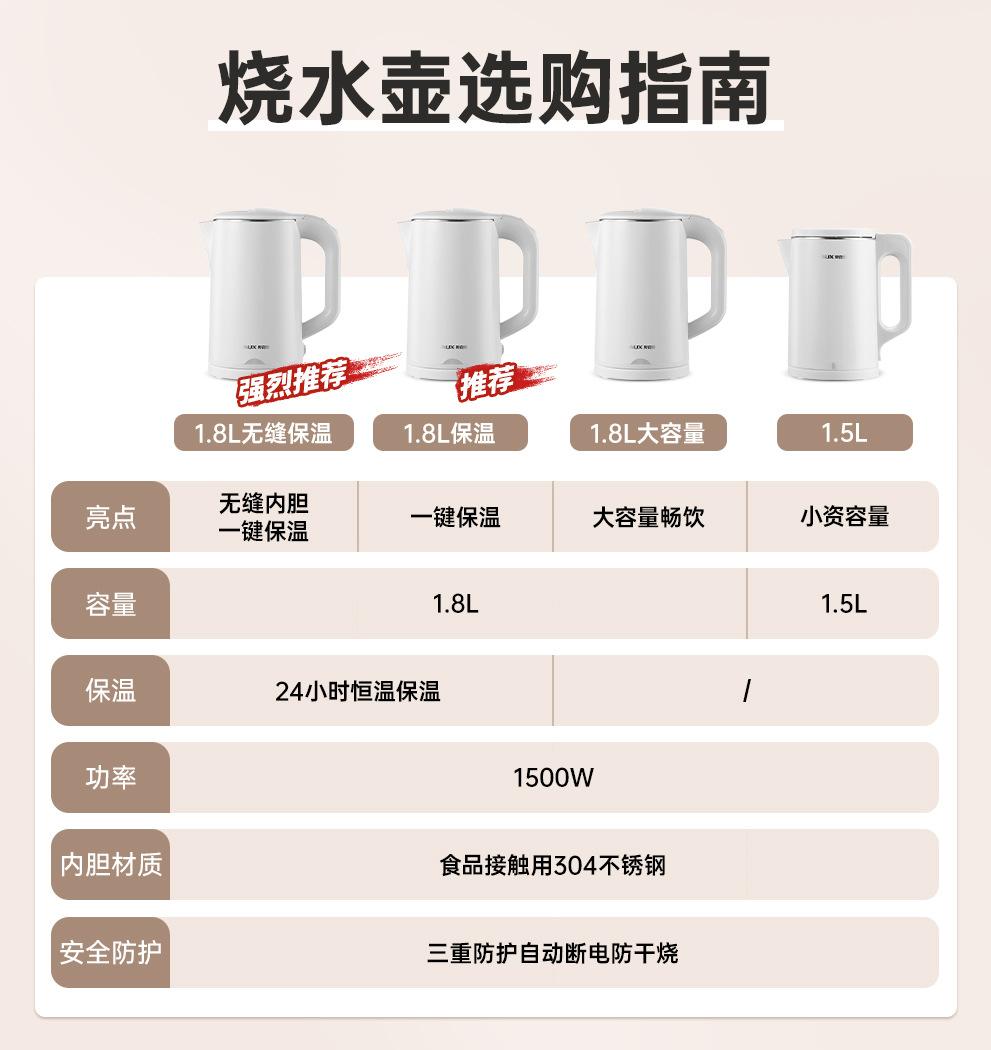 White 1811s (1.8l without insulation), White 1811b (1.8l + one-click insulation), White 1811wb (1.8l seamless ...