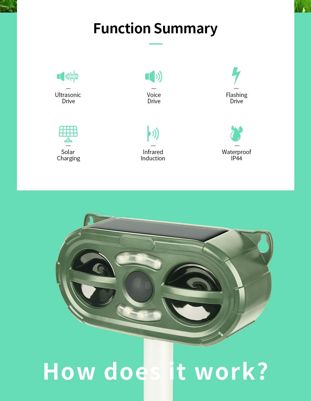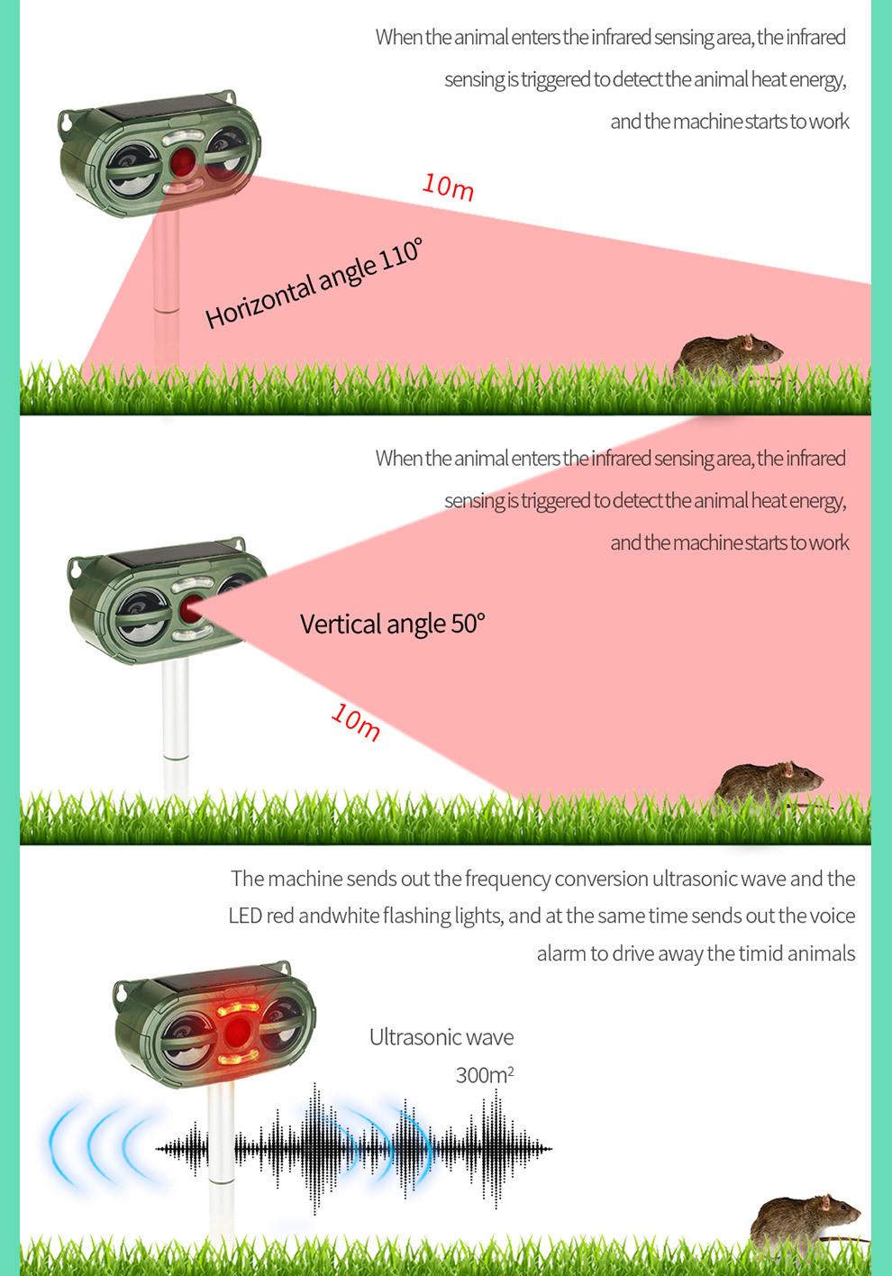 Repelente ultrasónico para ratones de Amazon, sensor infrarrojo, repelente de animales, alarma LED con flash, repelente de aves.