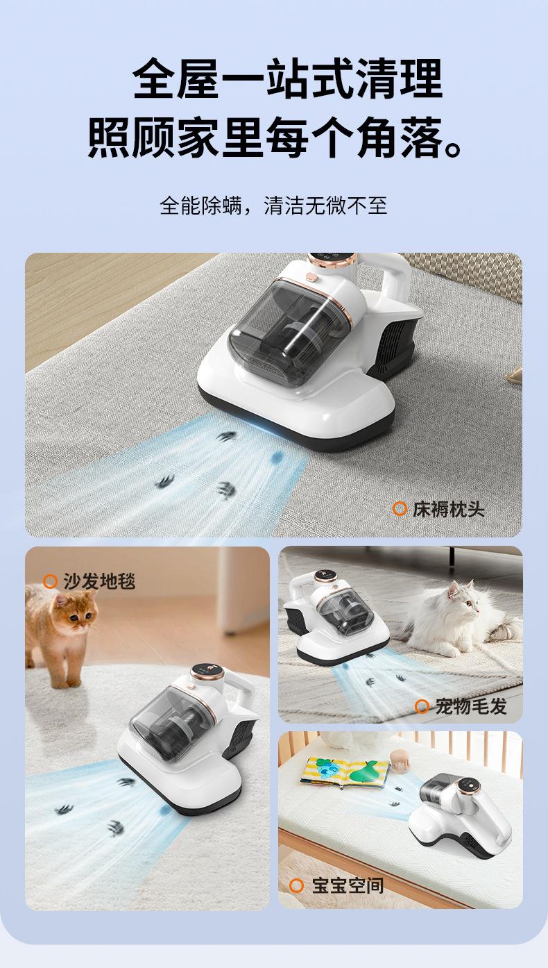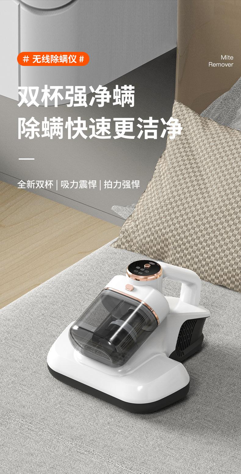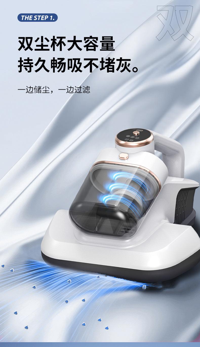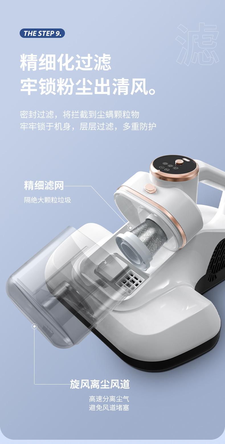 Función: 10000pa, ajuste de tres velocidades, doble batido, doble depósito de polvo, esterilización y eliminación de ácaros de alta eficiencia ultravioleta UV-C, aspirado, cama y sofá, etc.