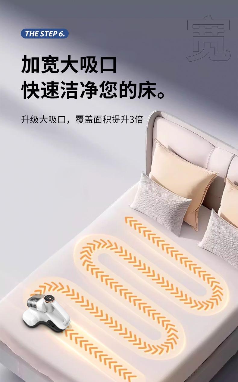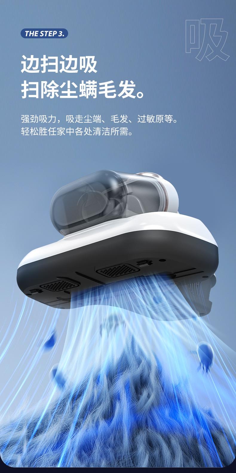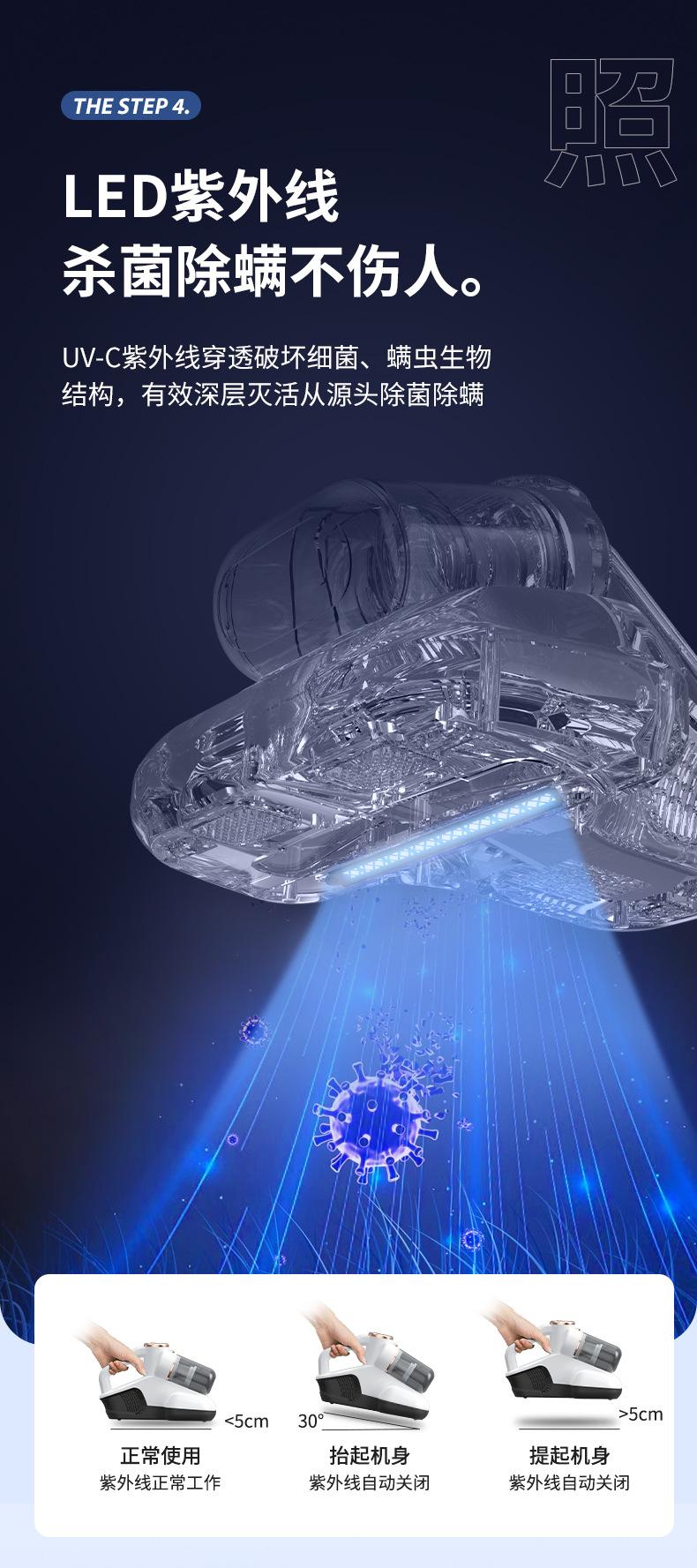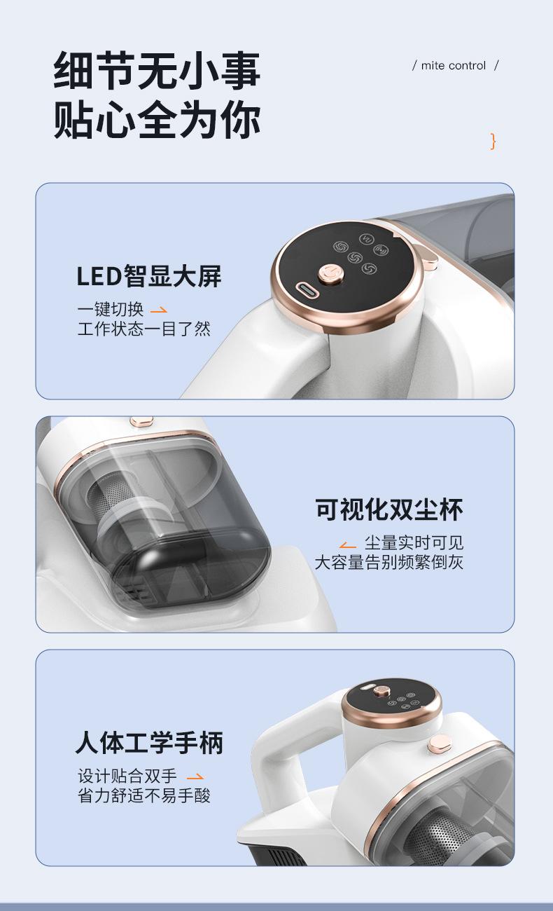 Función: 10000pa, ajuste de tres velocidades, doble batido, doble depósito de polvo, esterilización y eliminación de ácaros de alta eficiencia ultravioleta UV-C, aspirado, cama y sofá, etc.