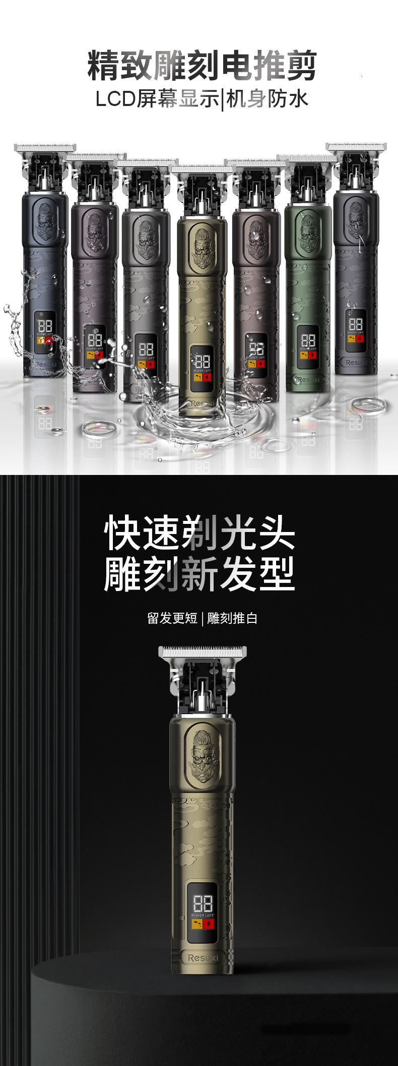 Punto de venta del producto: IPX4 a prueba de agua, pantalla digital LCD, cuerpo de metal, estilo retro, tallado de cabeza de aceite;