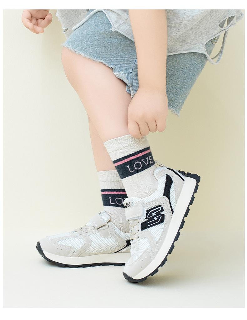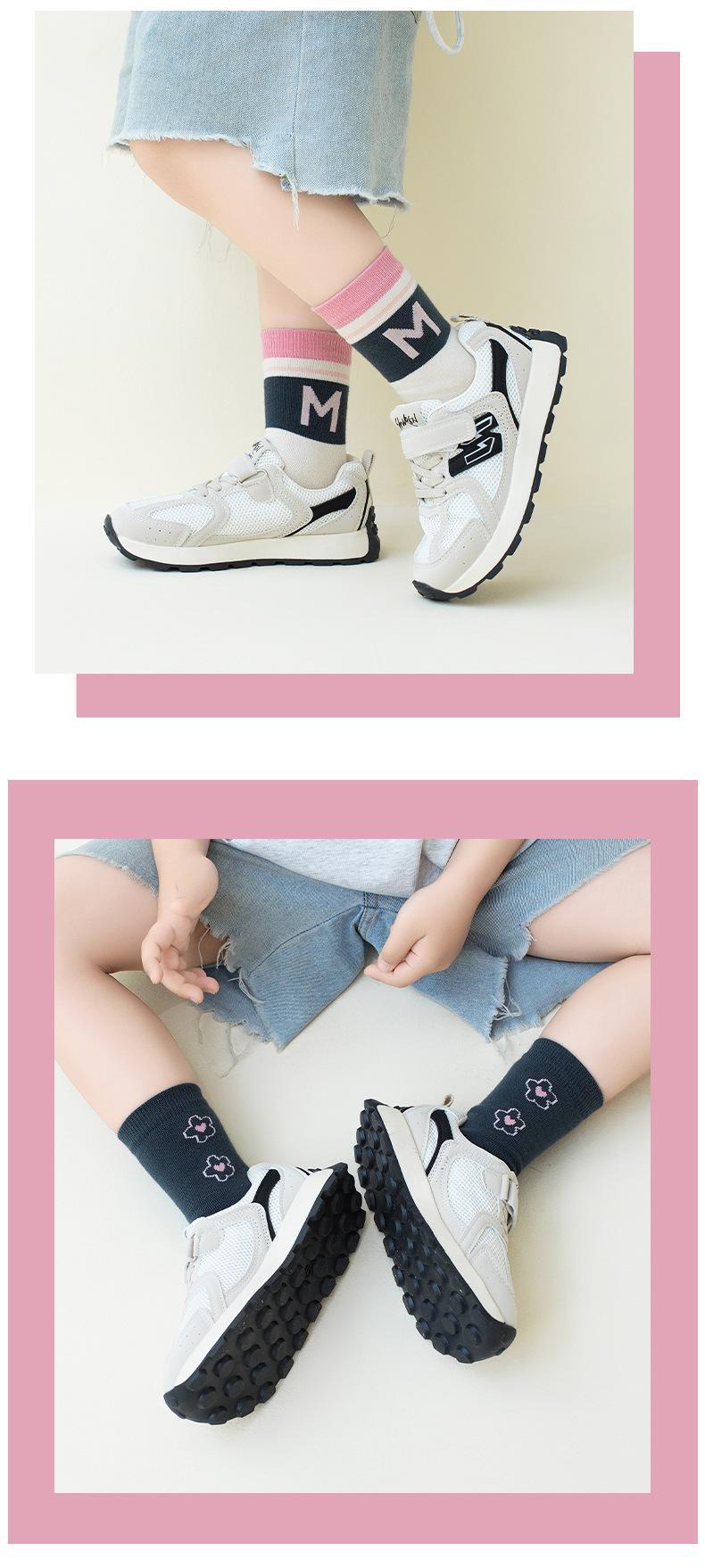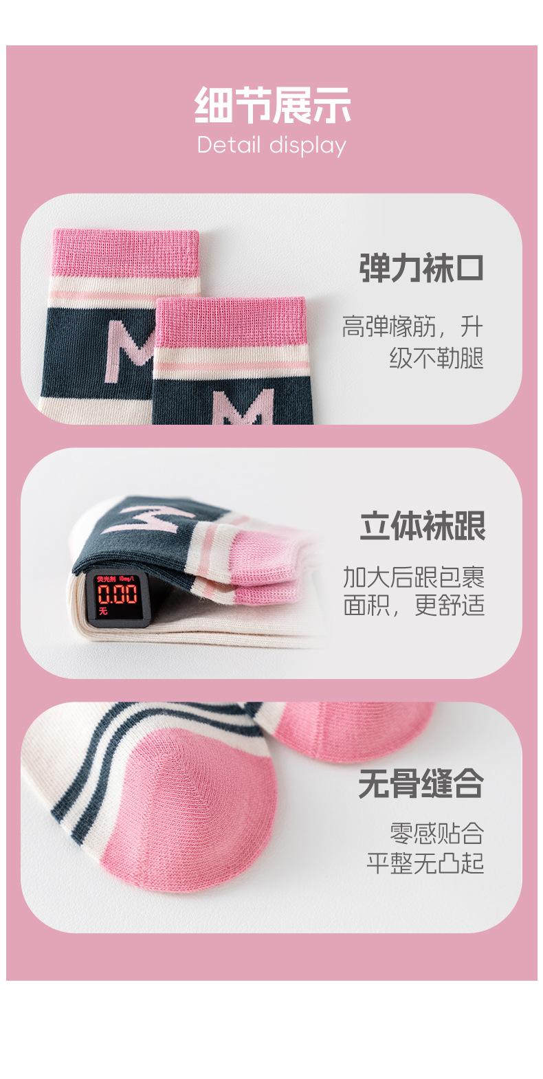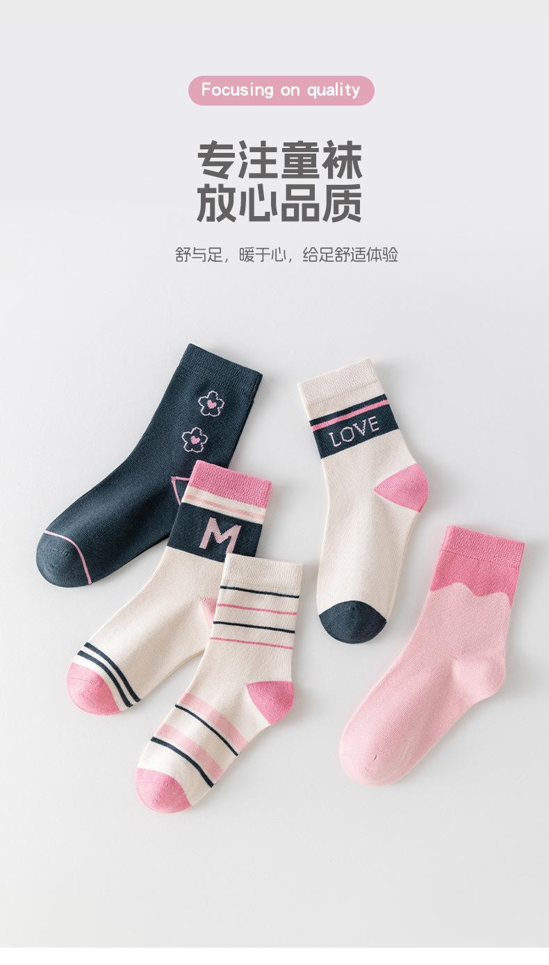 Calcetines para niños otoño nuevos a rayas combinación de colores categoría a sin costuras algodón peinado alfabeto calcetines para mujer calcetines de tubo medianos y grandes para niños