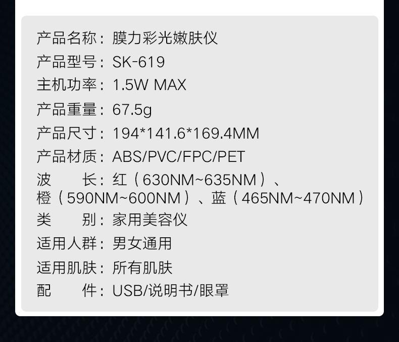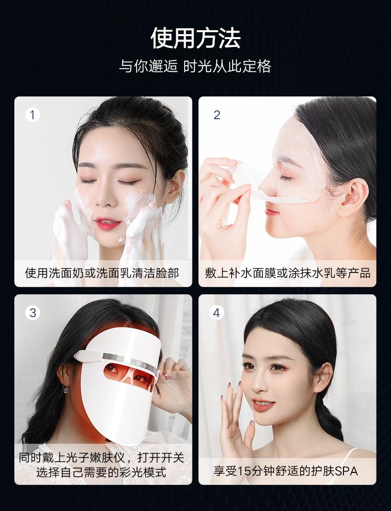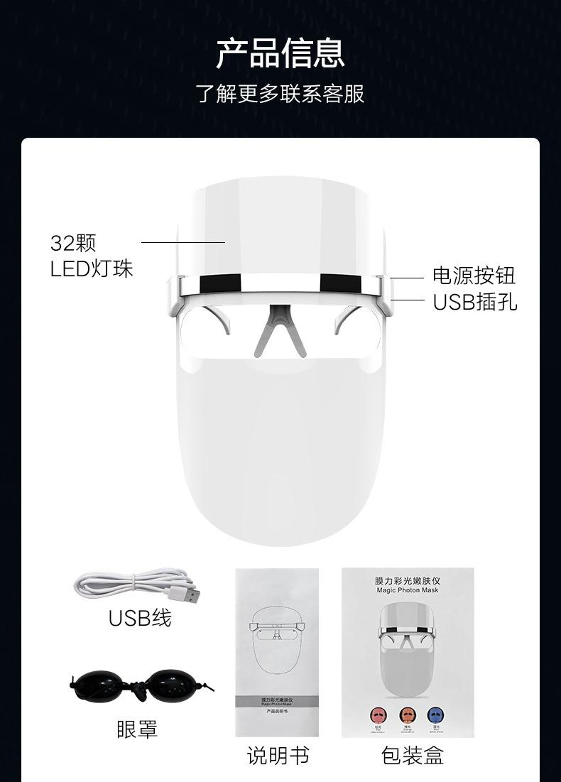 Máscara LED, instrumento de belleza, instrumento de rejuvenecimiento de la piel con fotones de tres colores, instrumento de uso doméstico para el rejuvenecimiento de la piel con luz de fila grande y espectrómetro para la eliminación del acné.
