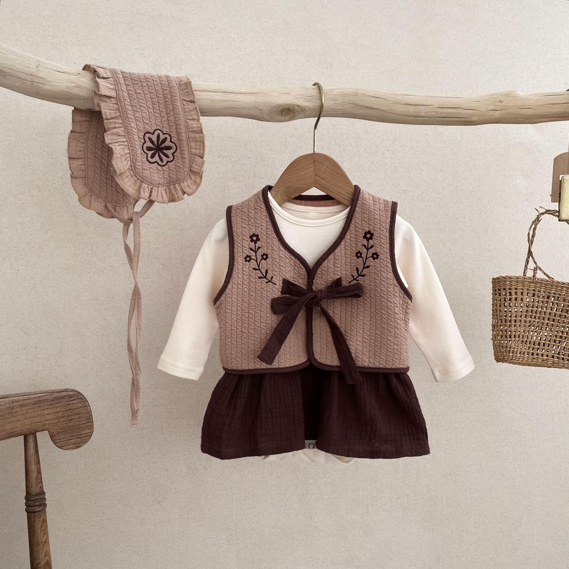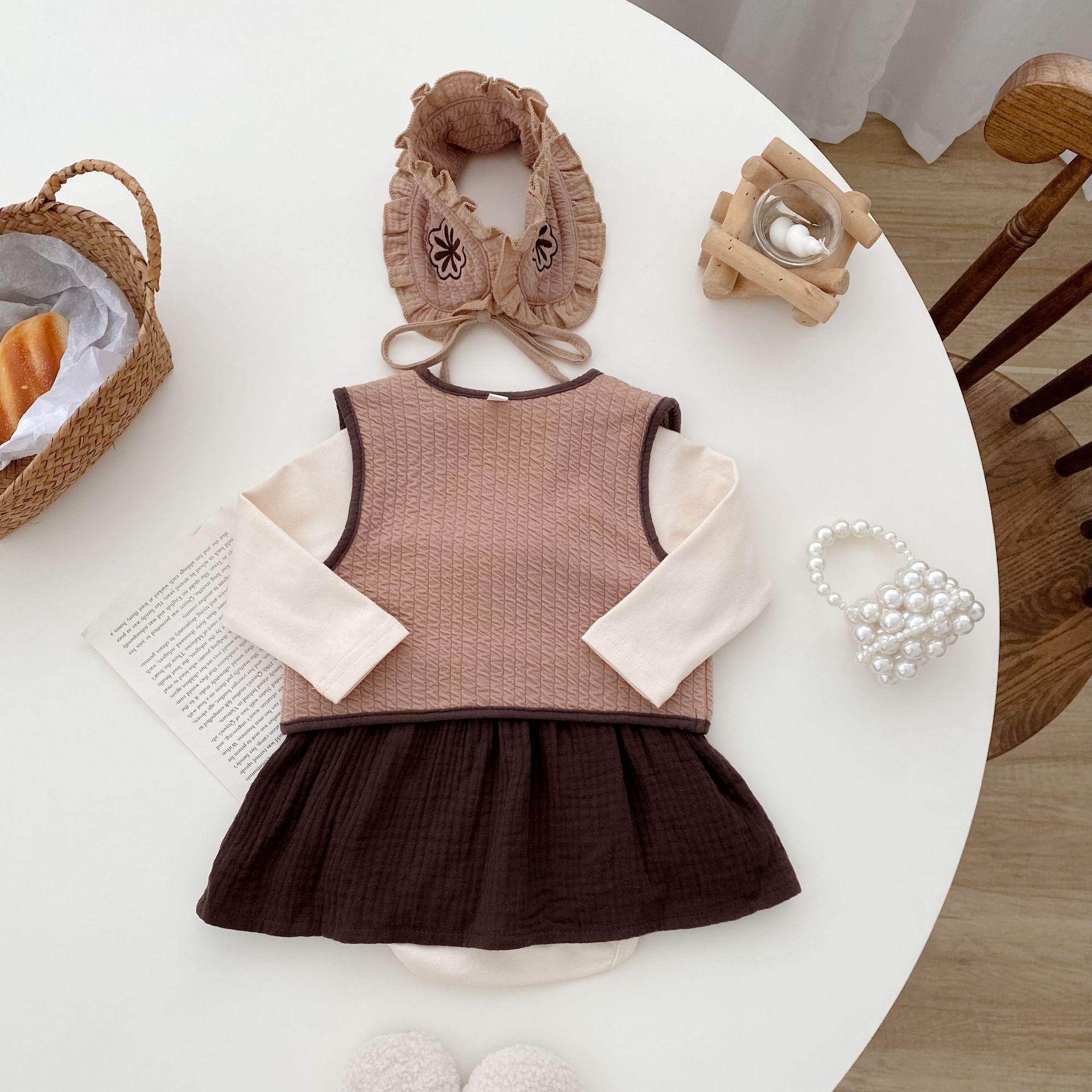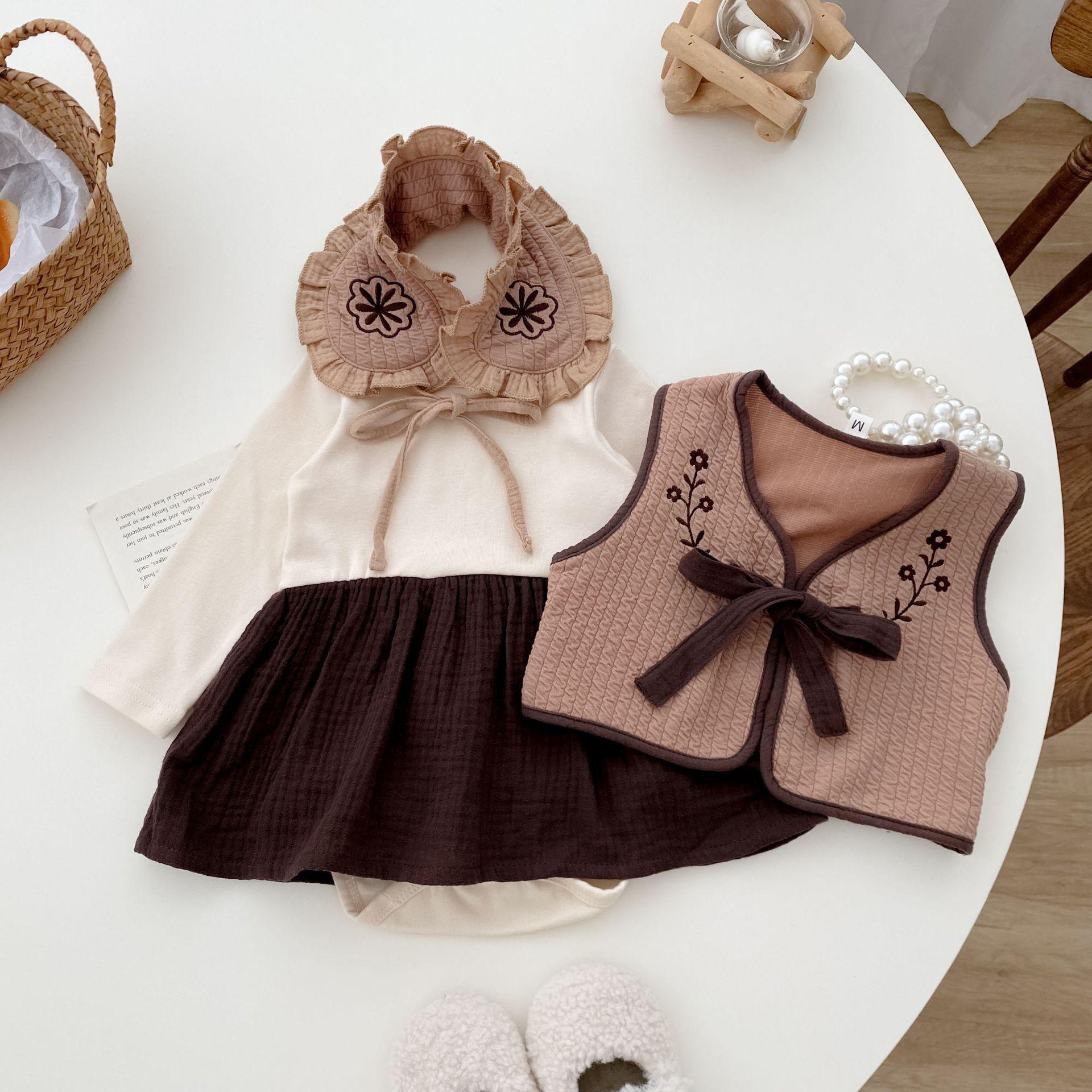 25 otoño nuevo traje de mameluco coreano para bebé ins ropa de bebé de tres piezas bolsa para bebé otoño ropa para pedos