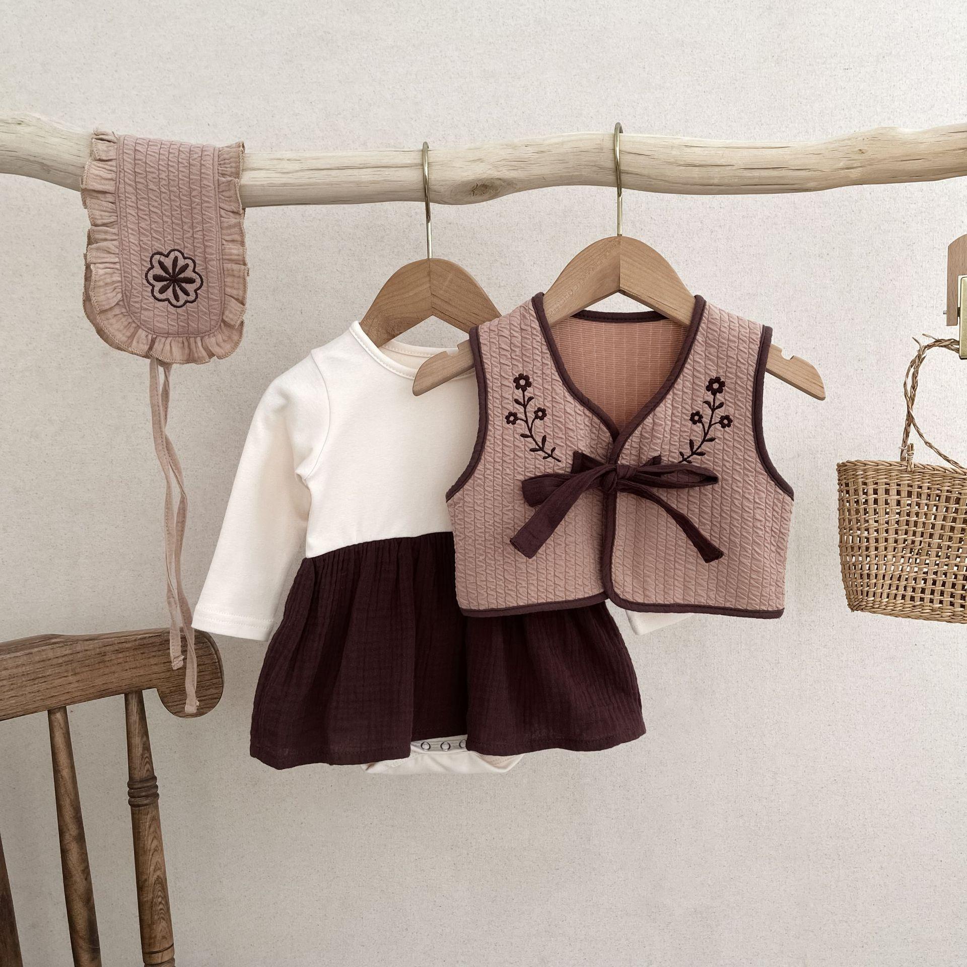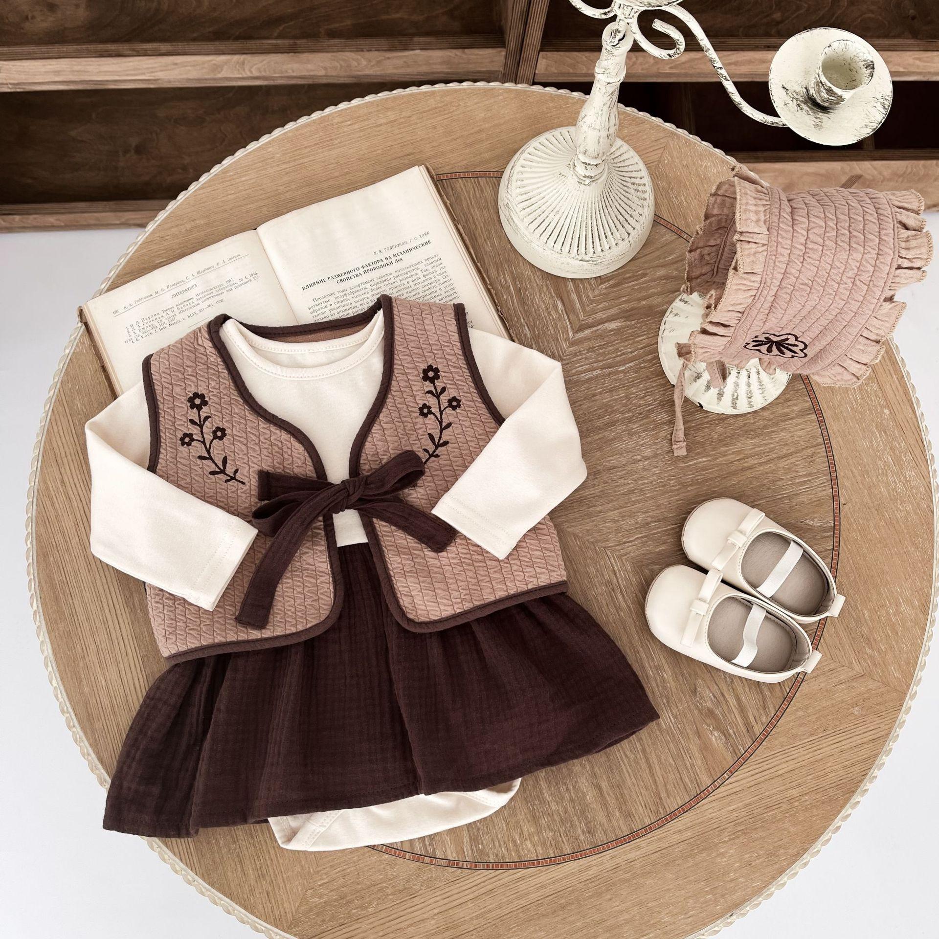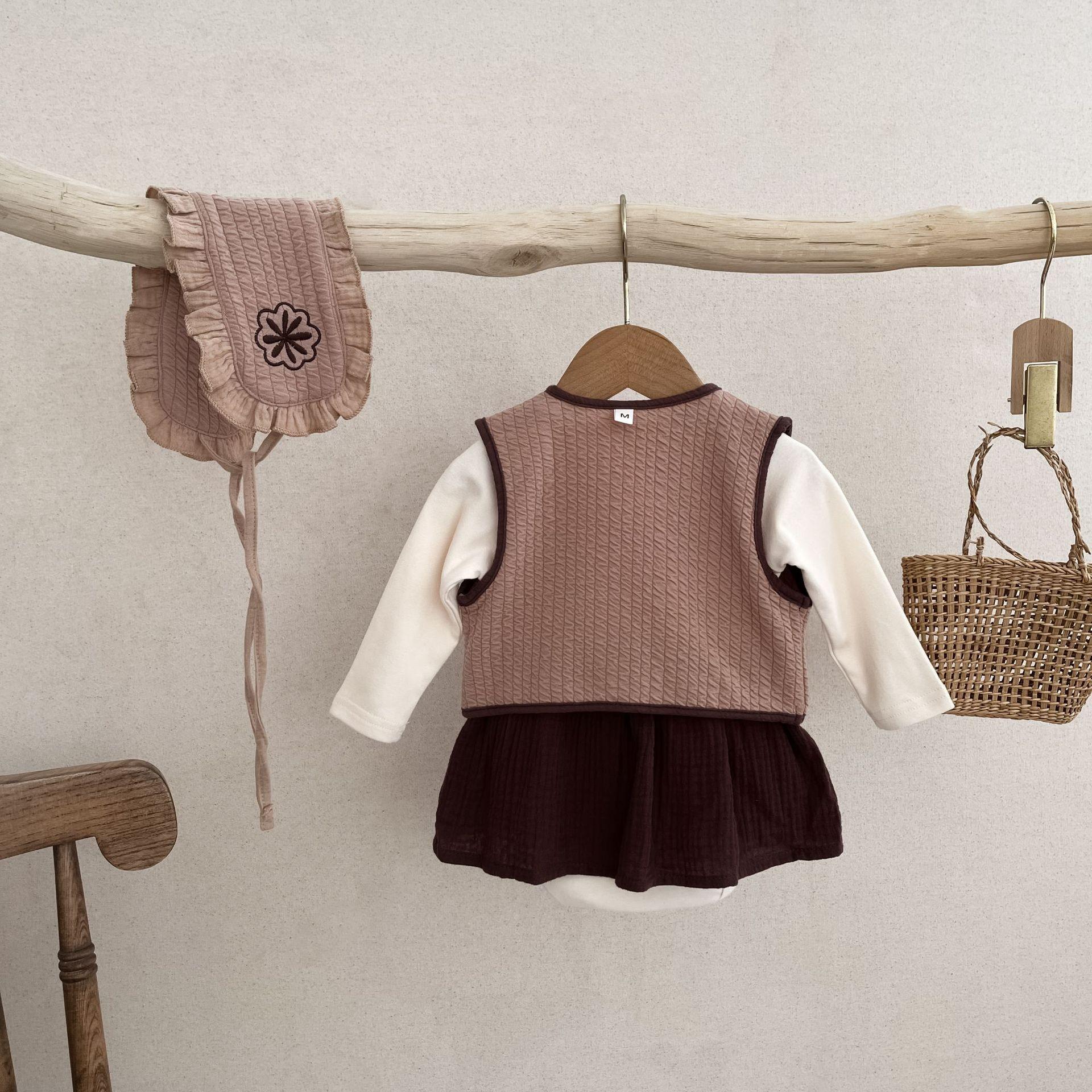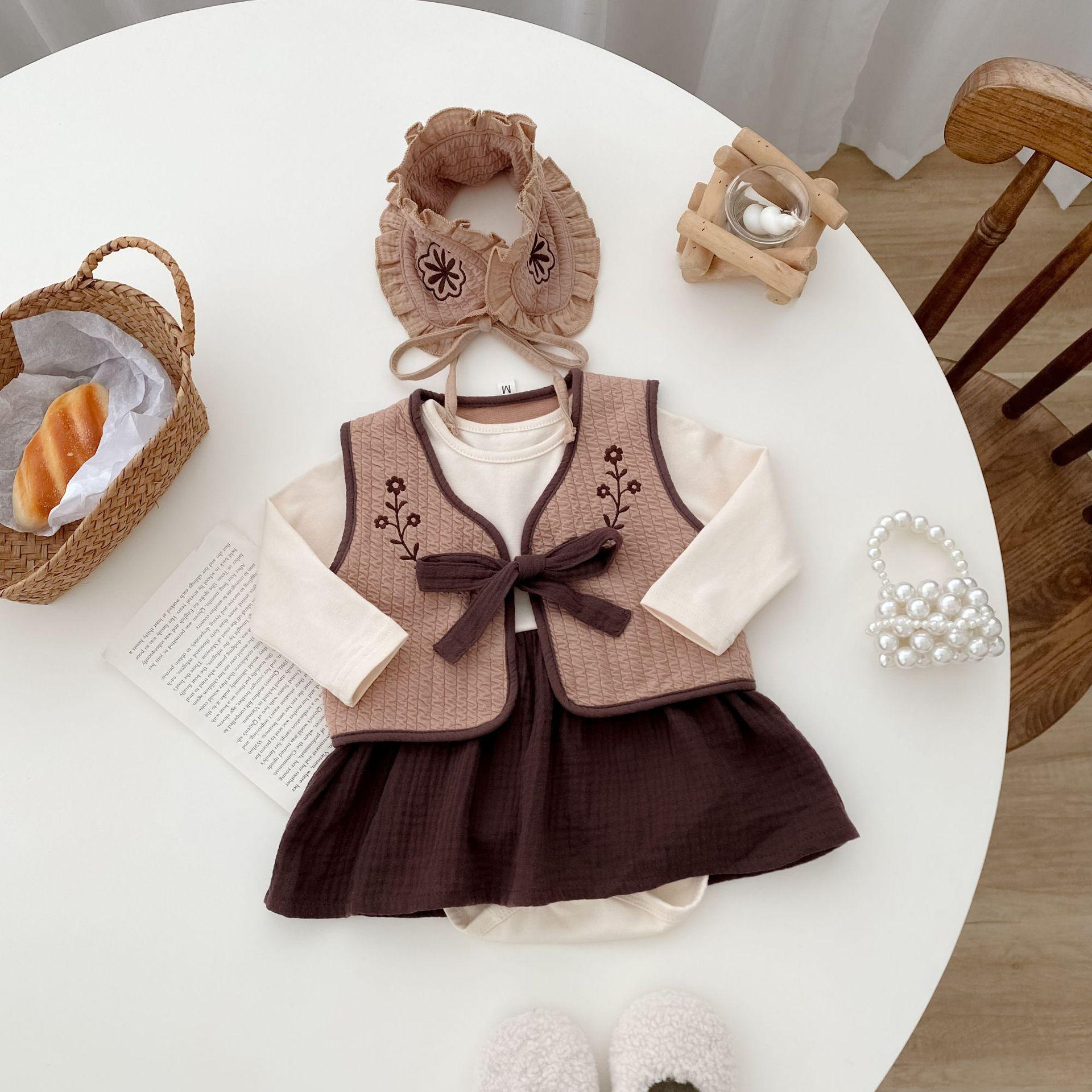25 otoño nuevo traje de mameluco coreano para bebé ins ropa de bebé de tres piezas bolsa para bebé otoño ropa para pedos