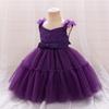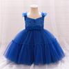 Vestido de niña nuevo europeo y americano, falda con lazo sin mangas, vestido de malla sin mangas, falda de princesa para niñas