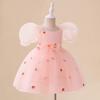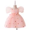 Vestido de princesa para niñas europeas y americanas, nuevo, con lazo bordado, vestido infantil de malla con mangas abullonadas, vestido de fiesta