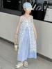Vestido de Manga Corta para Niñas 2025 Verano Nuevo Estilo Vestido de Princesa Estilo Coreano para Niños Medianos y Grandes Vestido Delgado de Gasa