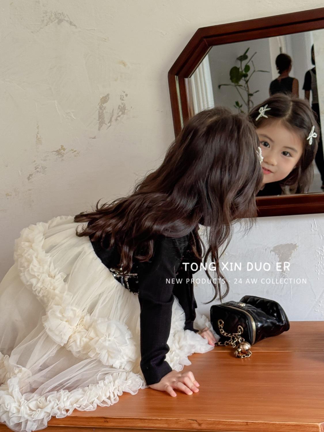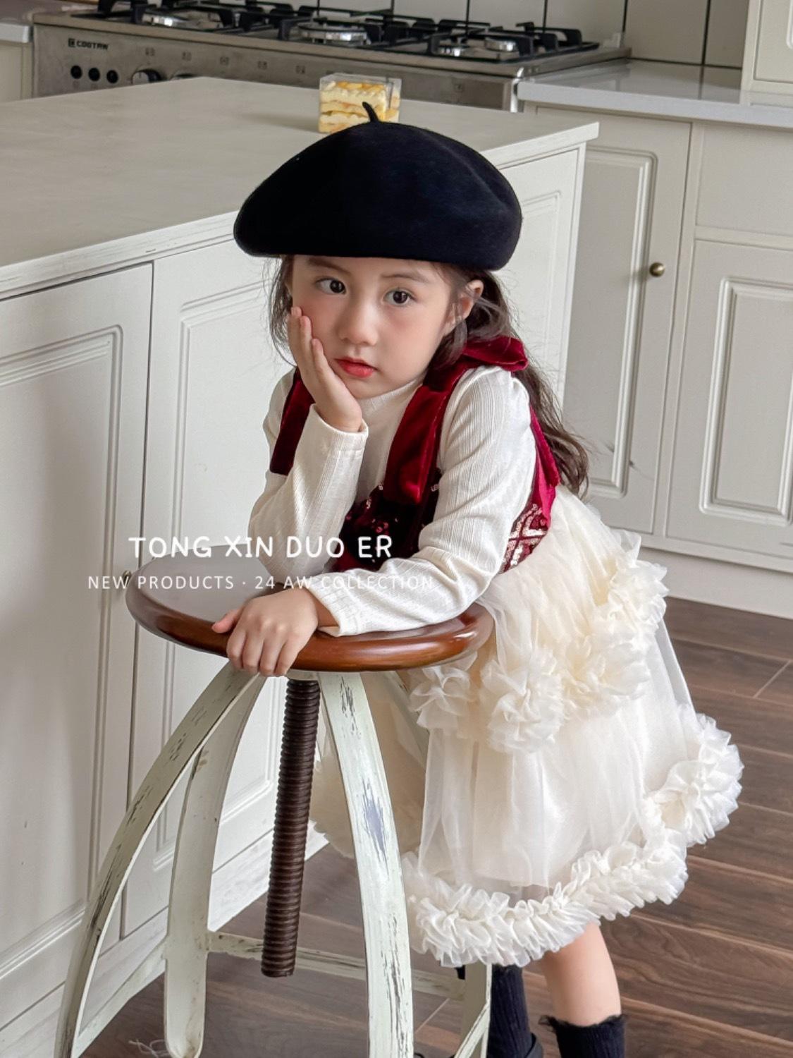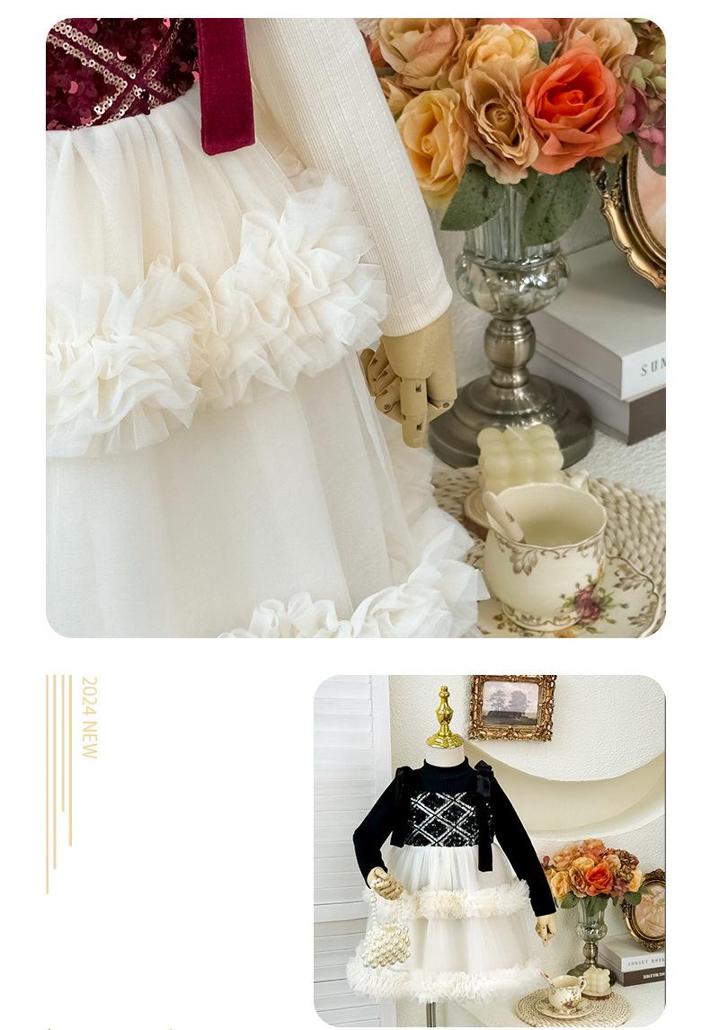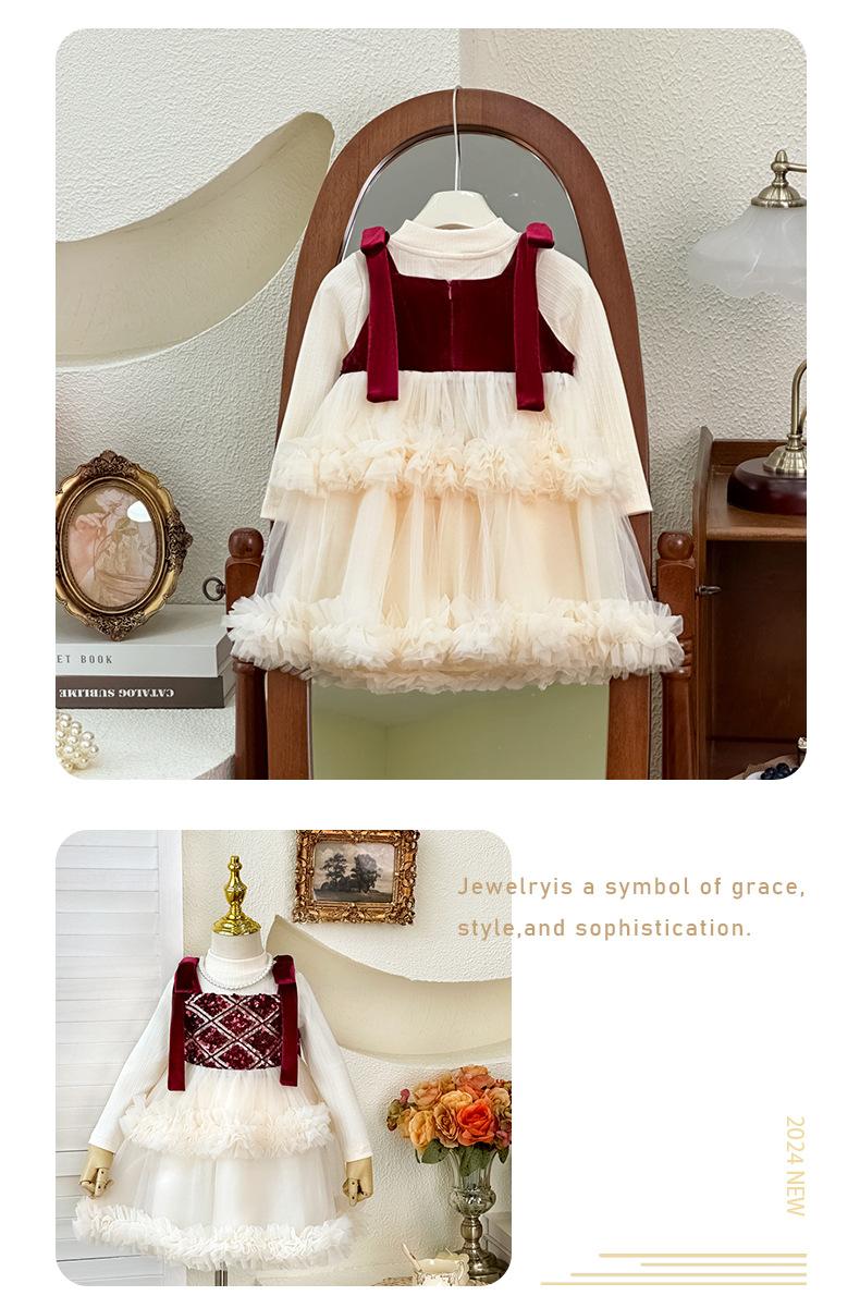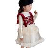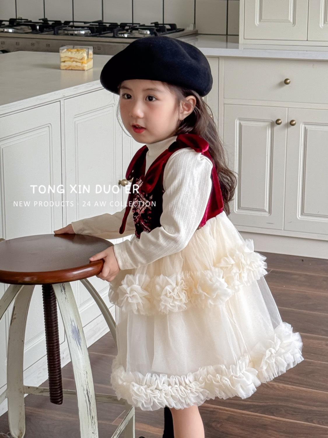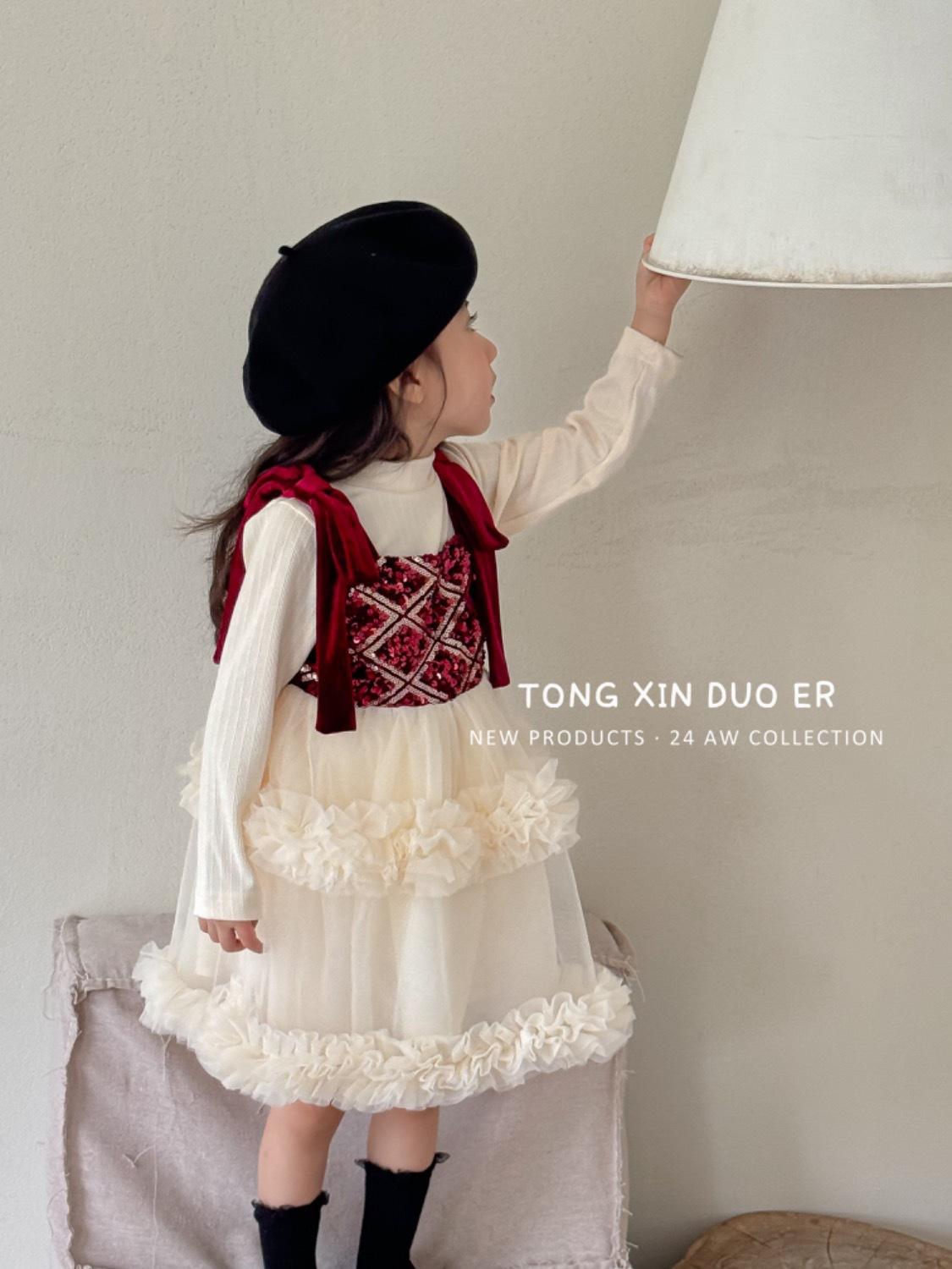 Vestido de Niña 2025 Otoño Nuevo Vestido de Niña Pequeña Correa de Lazo Falda de Dos Piezas Estilo Princesa