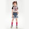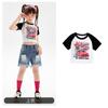 7009 black short sleeve +6002 blue denim shorts + pink hairband + Rose socks