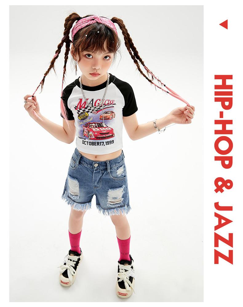 Ropa de baile de jazz, hip-hop para niñas, moda de verano, ropa de calle, pasarela infantil, ropa de competición de baile callejero, ropa de actuación