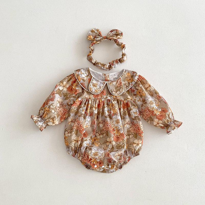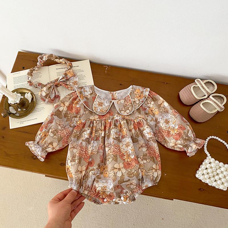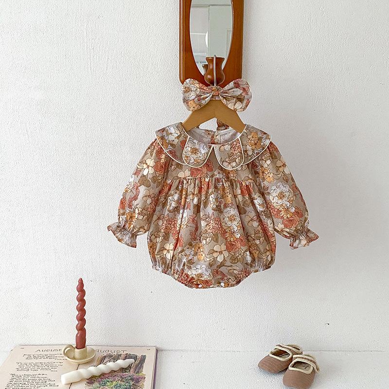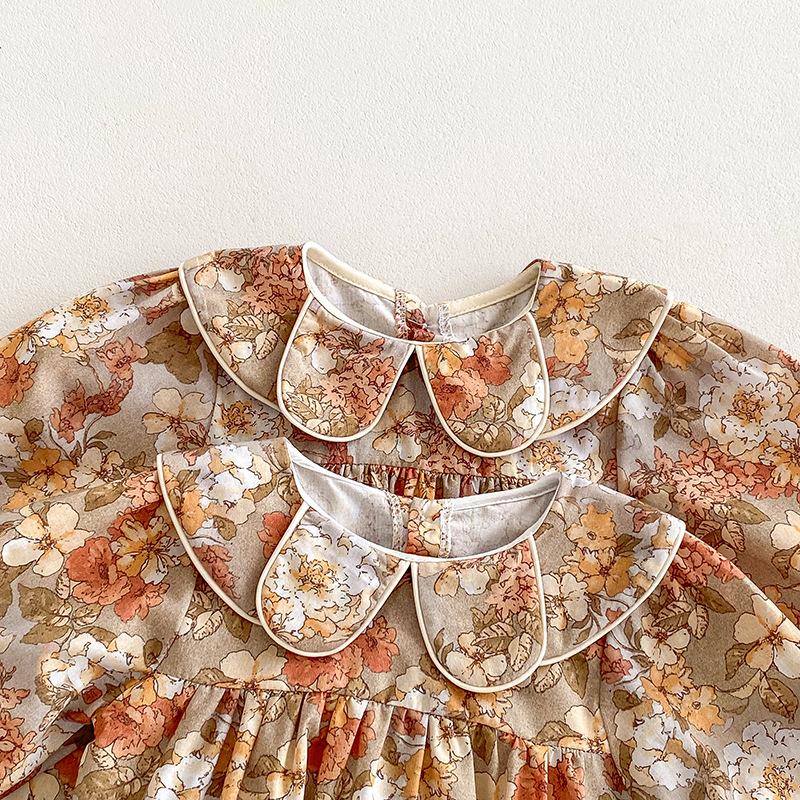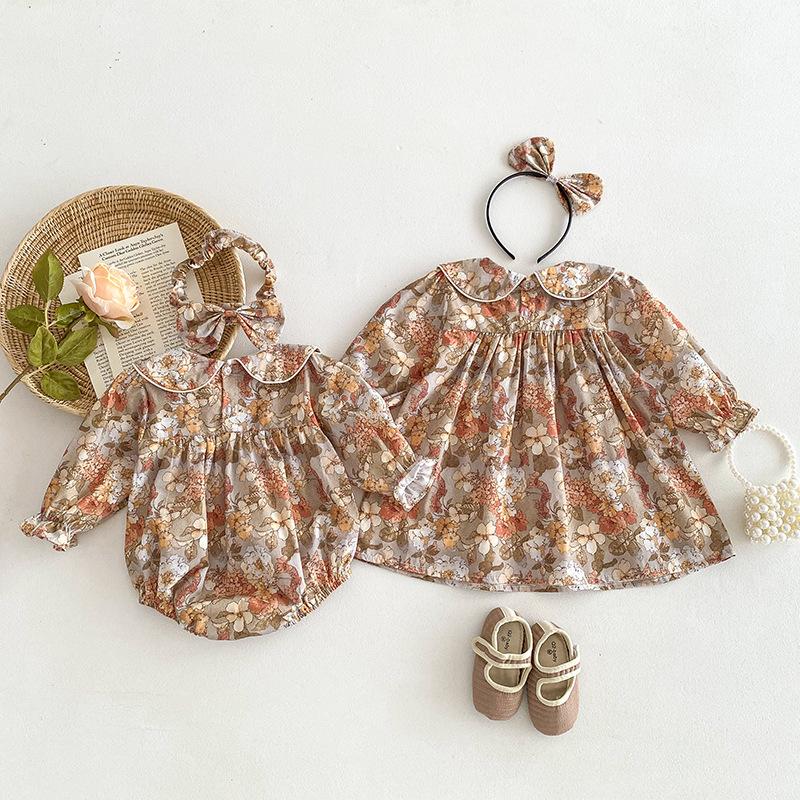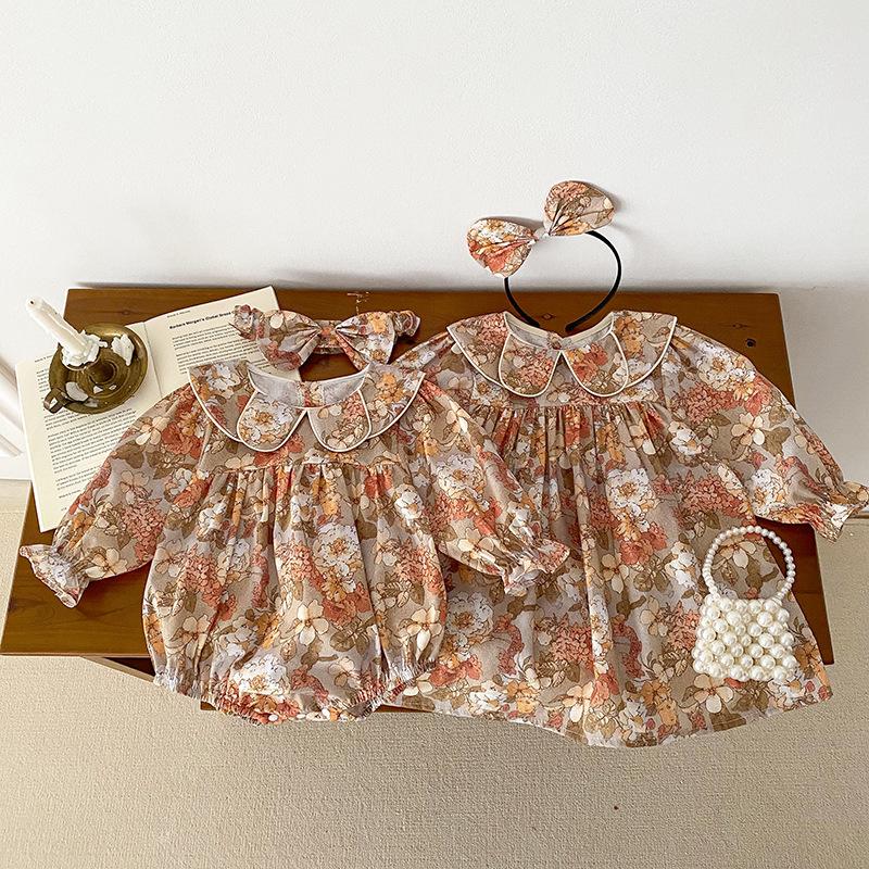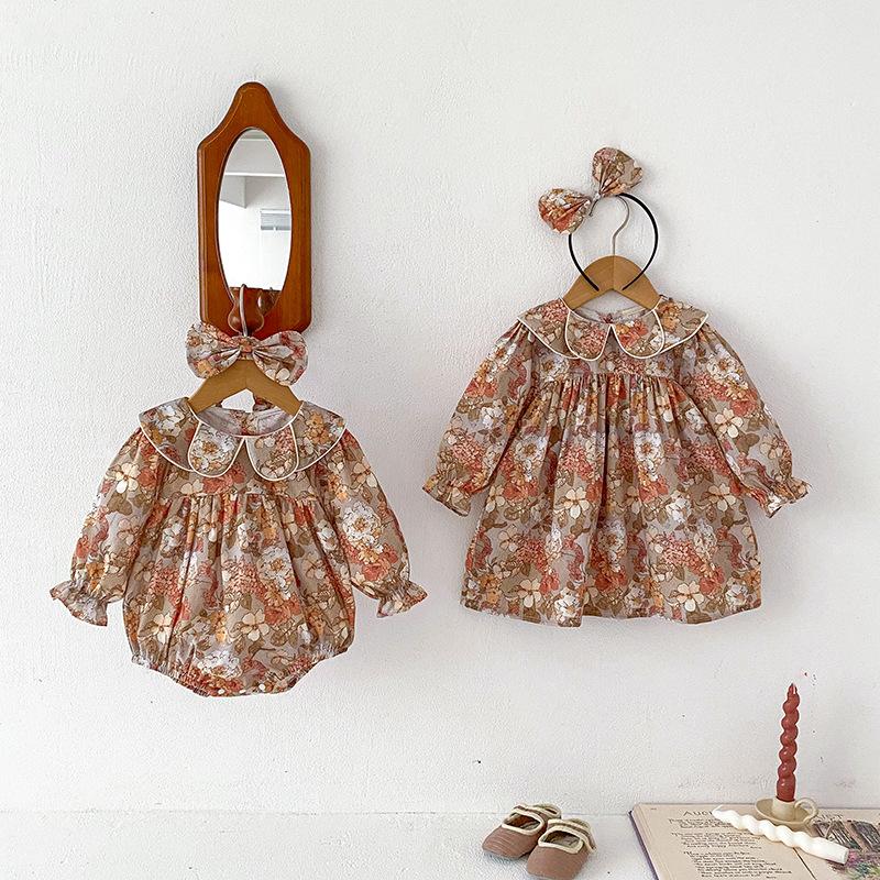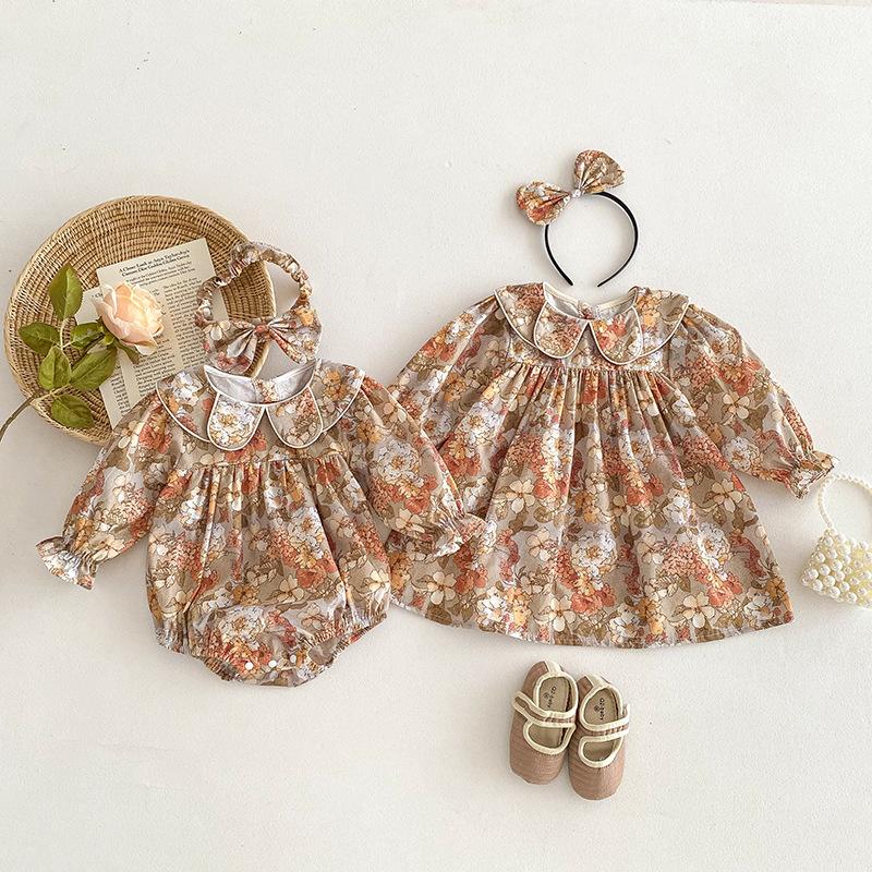 Ropa de Bebé Otoño 2025 Mameluco de Encaje con Cuello de Muñeca para Bebé Niña Vestido Coreano para Niñas Ropa para Pedos Bolso Conjunto de Hermanas