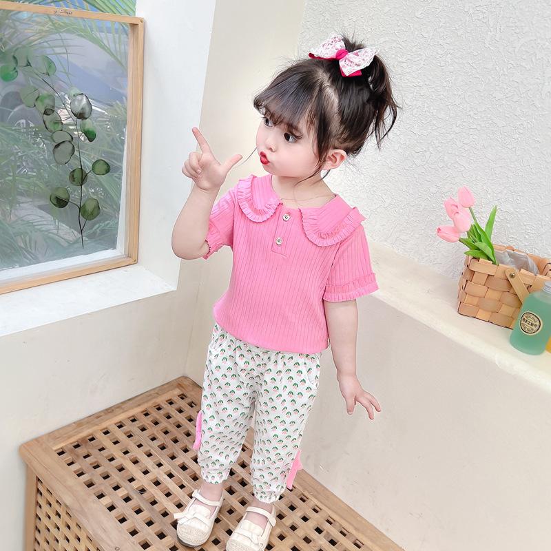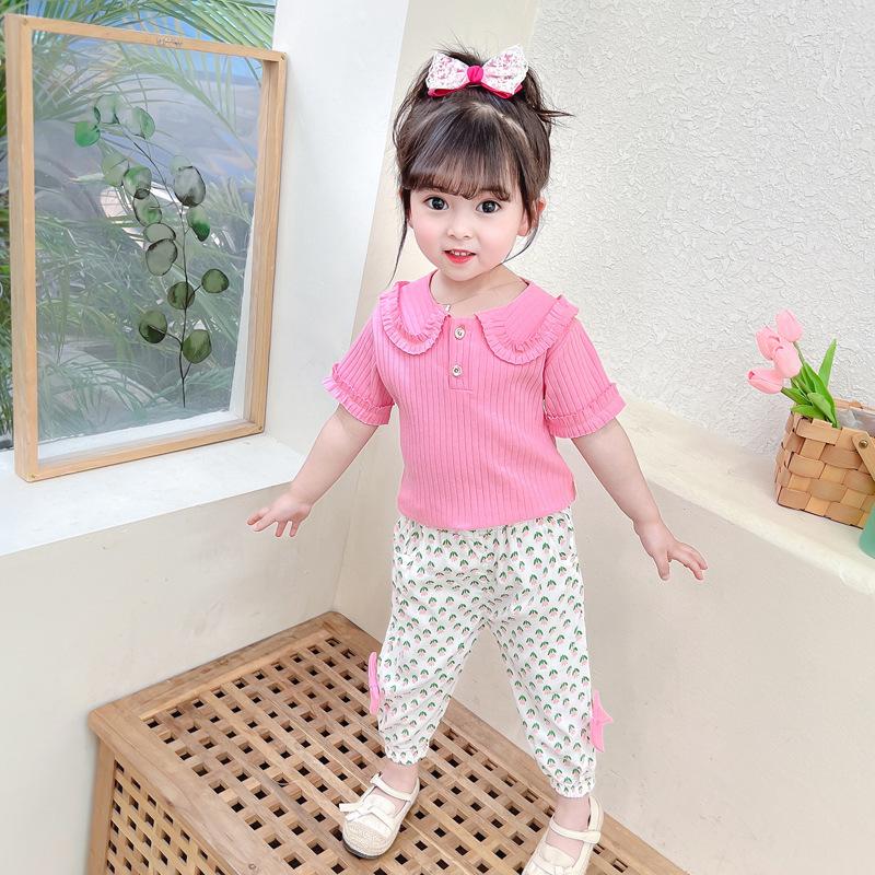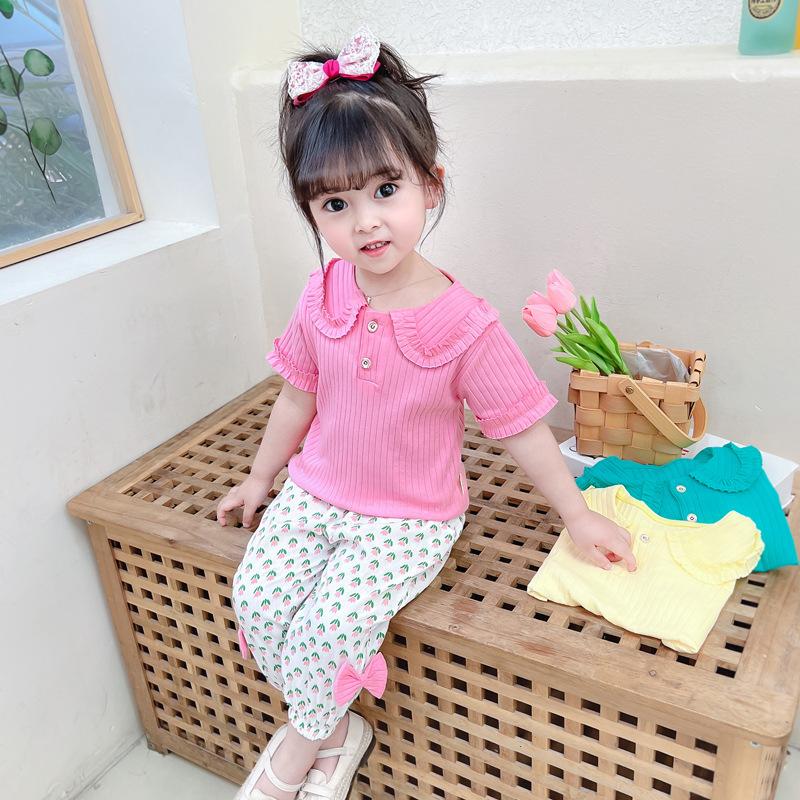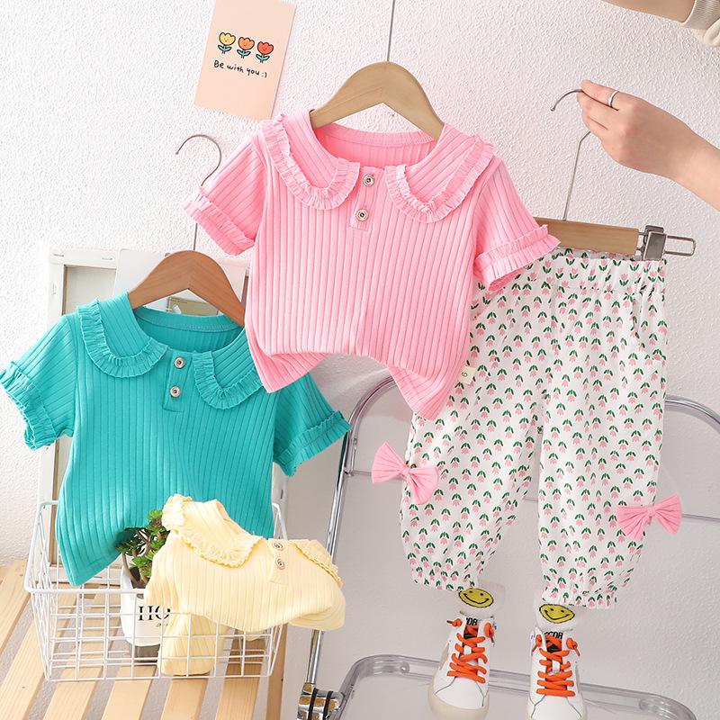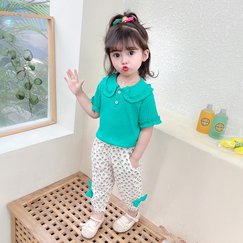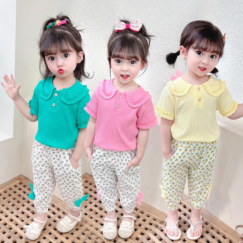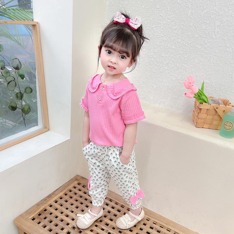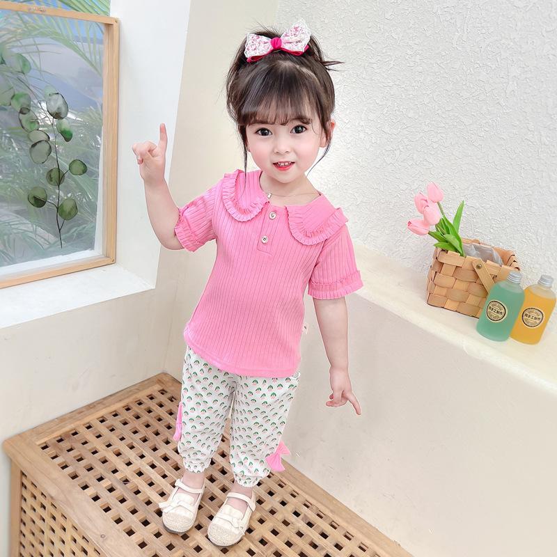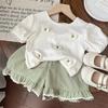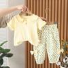 Traje de Manga Corta para Niña 2025 Nuevo Bebé Niña Verano Solapa Conjunto de Dos Piezas Moda Tendencia de Verano para Niños