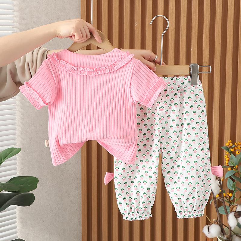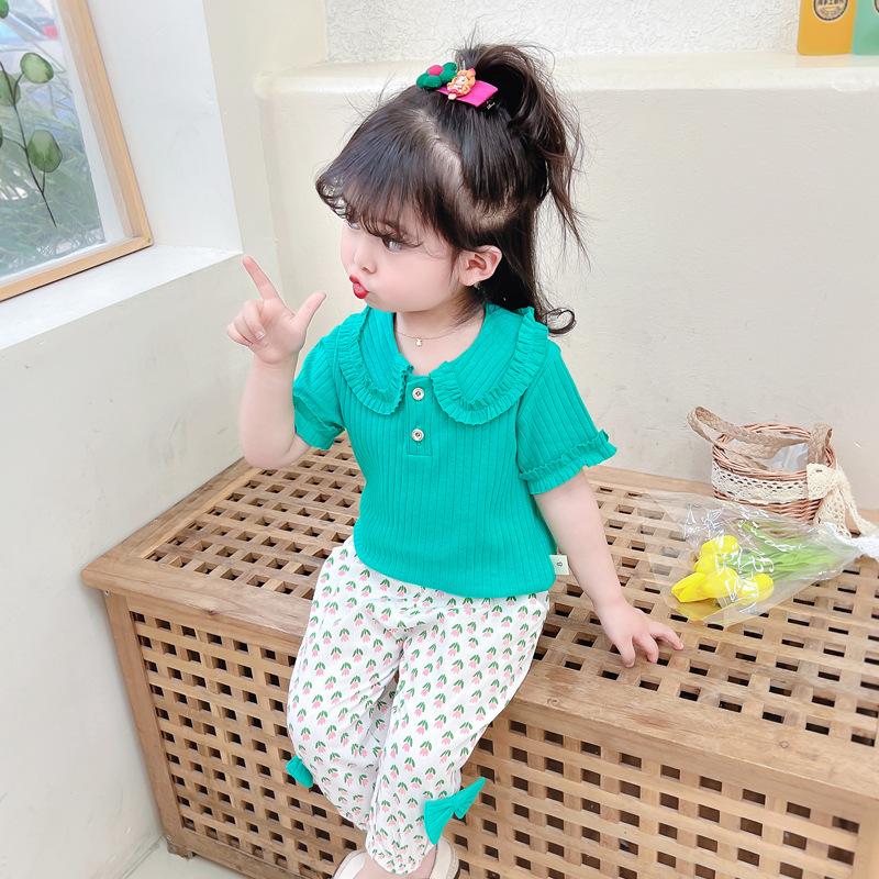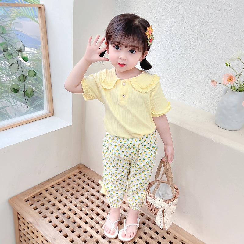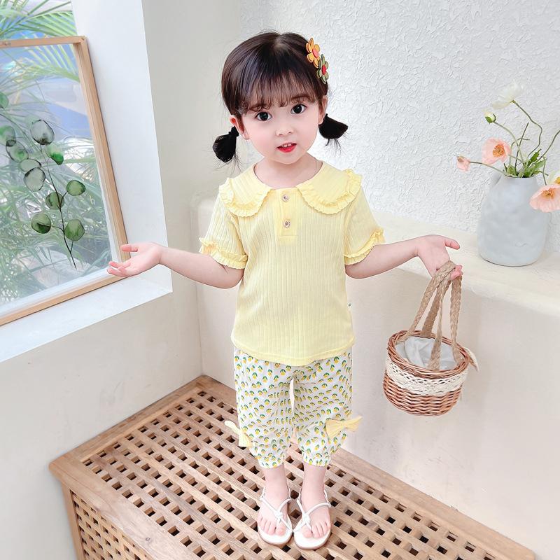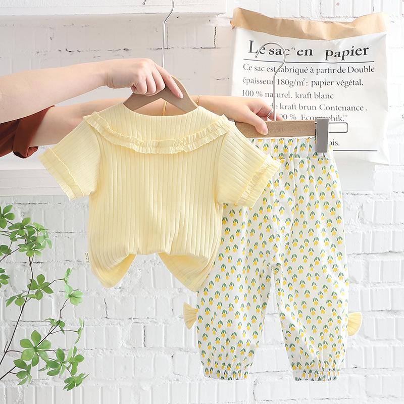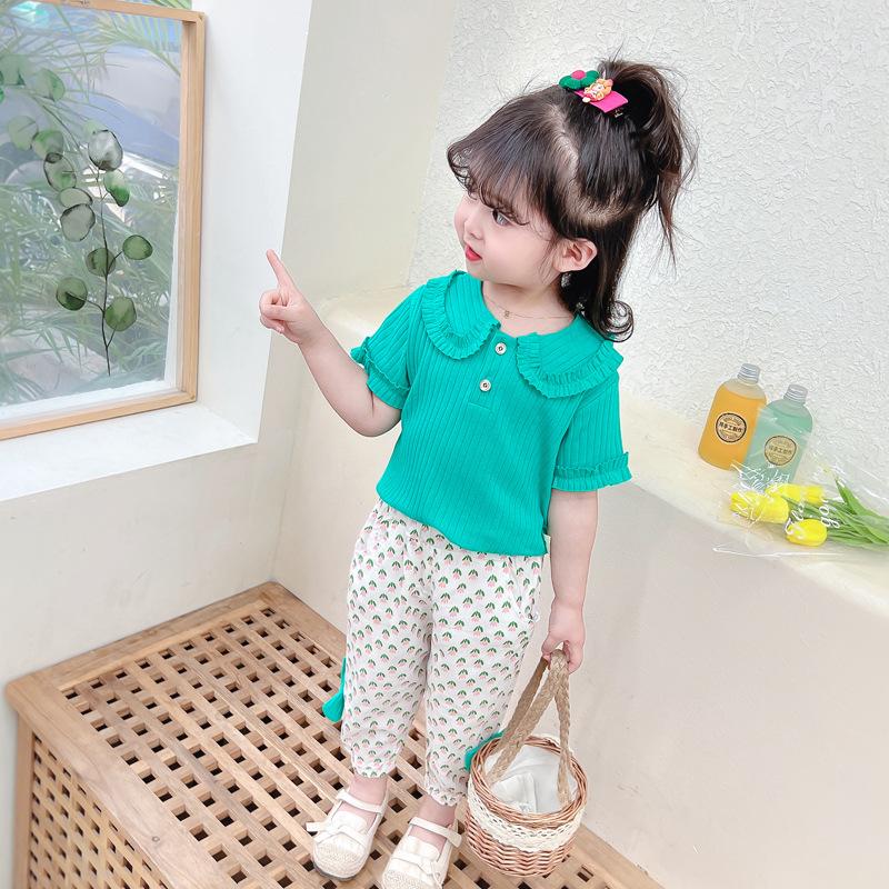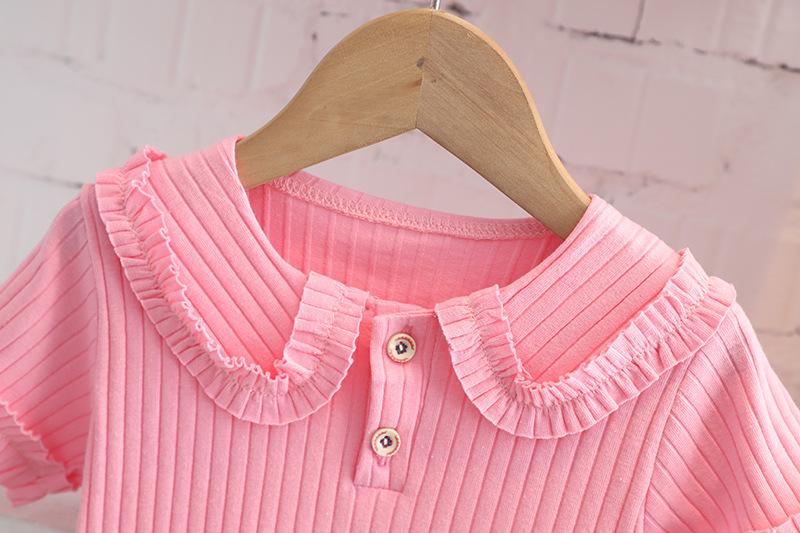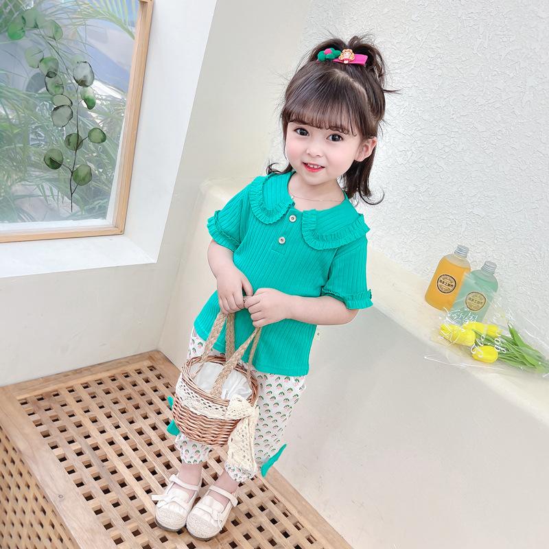 Traje de Manga Corta para Niña 2025 Nuevo Bebé Niña Verano Solapa Conjunto de Dos Piezas Moda Tendencia de Verano para Niños