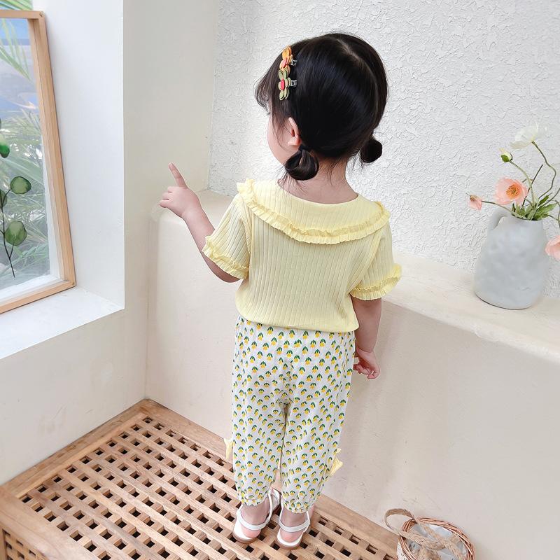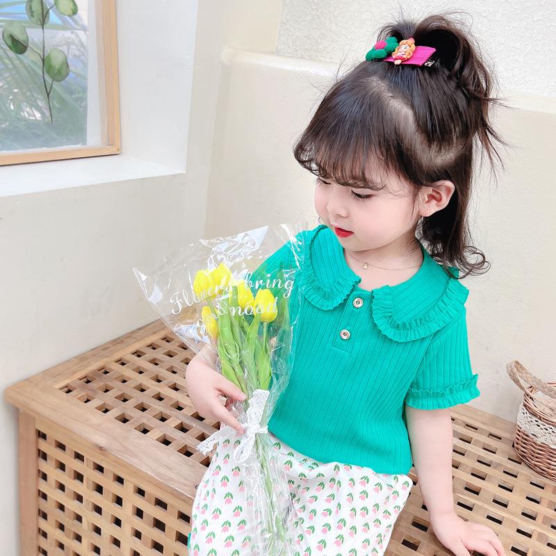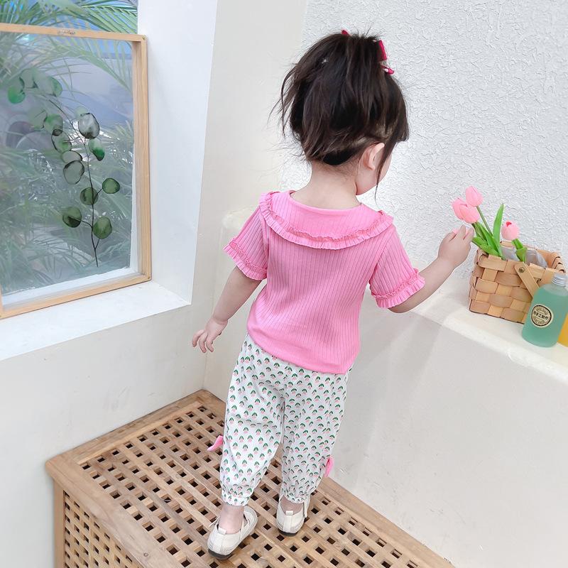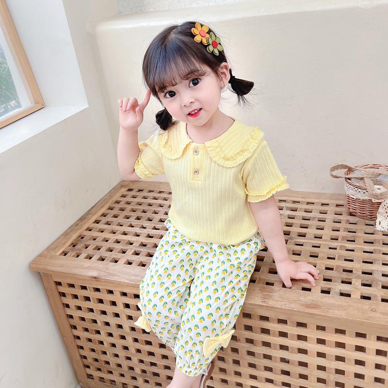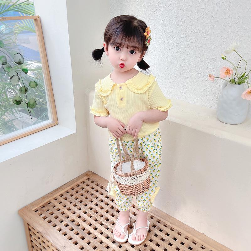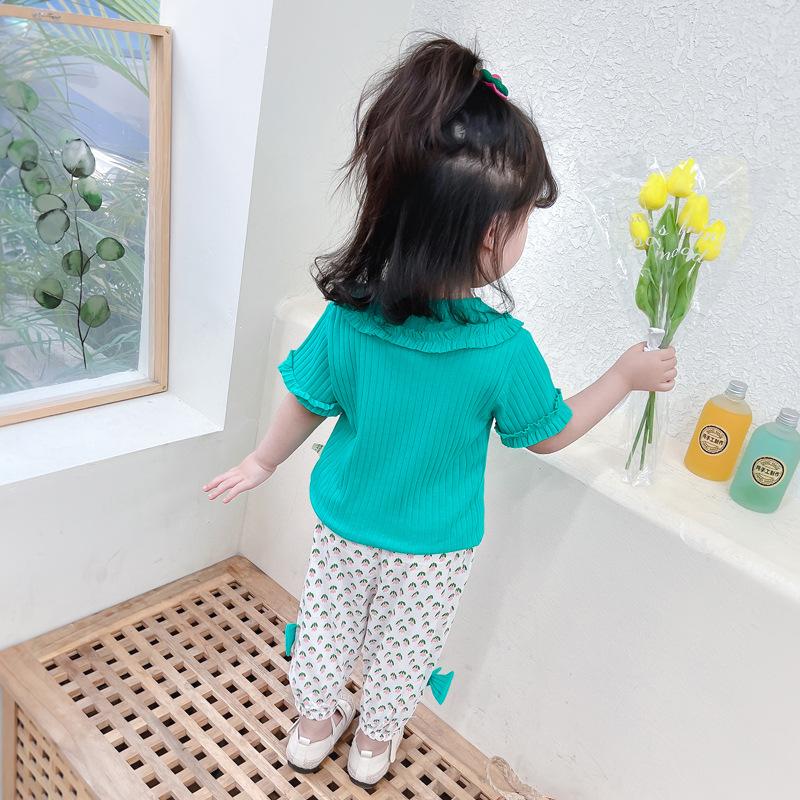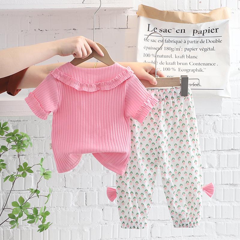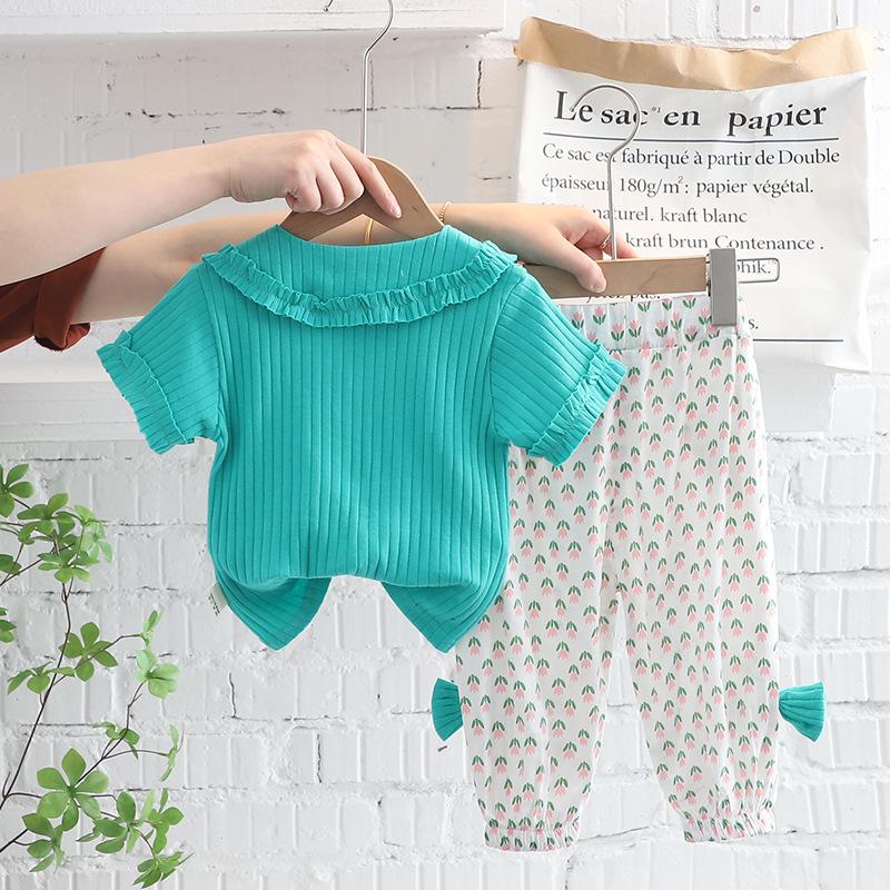 Traje de Manga Corta para Niña 2025 Nuevo Bebé Niña Verano Solapa Conjunto de Dos Piezas Moda Tendencia de Verano para Niños