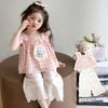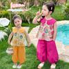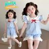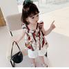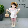 Traje de manga corta con flores para niñas pequeñas y medianas, cuello de muñeca para niñas de 0 a 4 años, ropa de verano de dos piezas, venta al por mayor 2