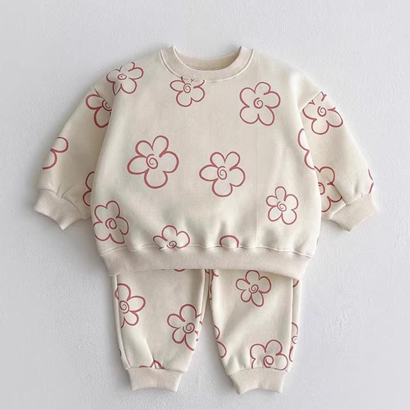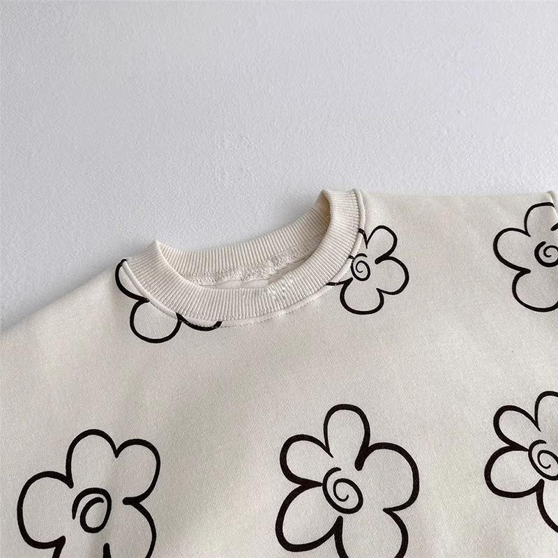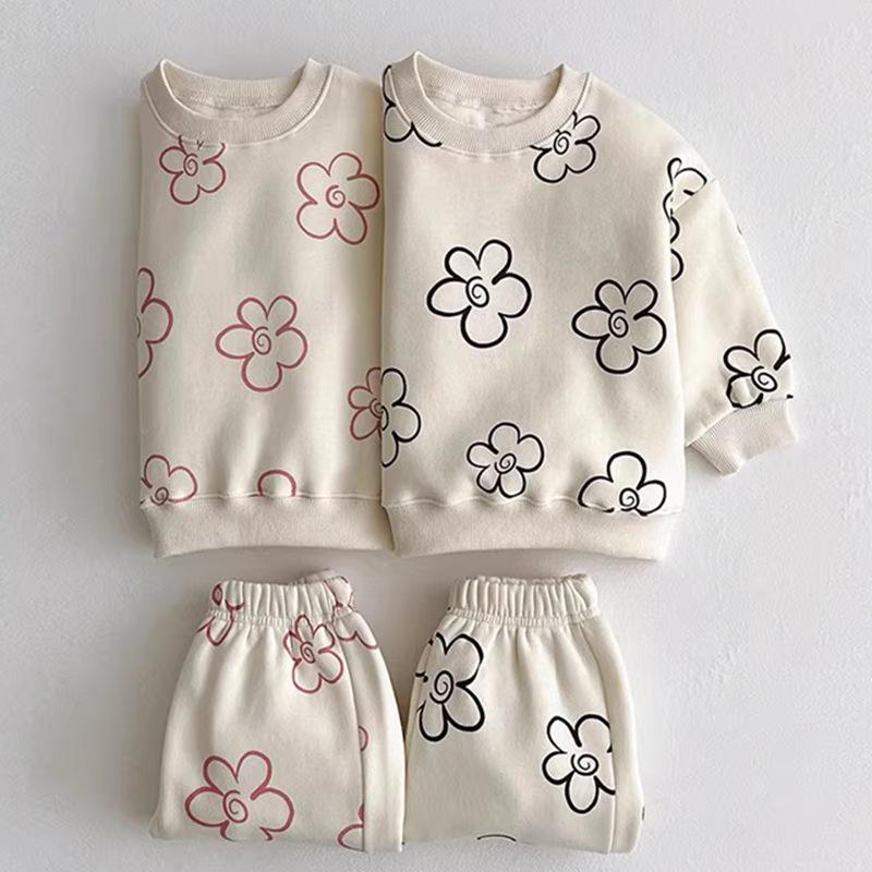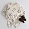 Conjunto Dulce Floral para Niñas Estilo Coreano Primavera y Otoño Ropa Infantil Sudadera y Pantalón Largo Ins Casual Cómodo Set de Dos Piezas
