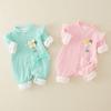 Ropa de Primavera y Otoño para Bebé Recién Nacido de Una Pieza Bebé Niña Lindo Flor Estilo Extranjero Ropa de Liebre Luna Llena Ropa para Gatear para Cien Días