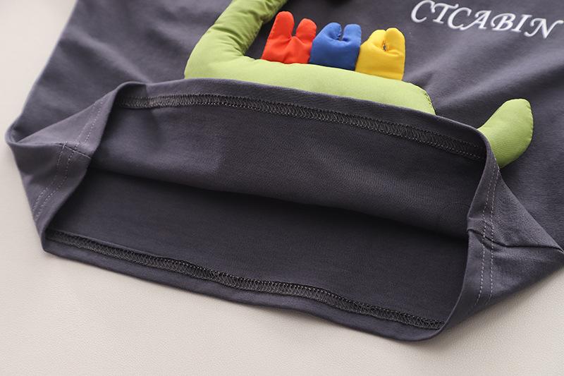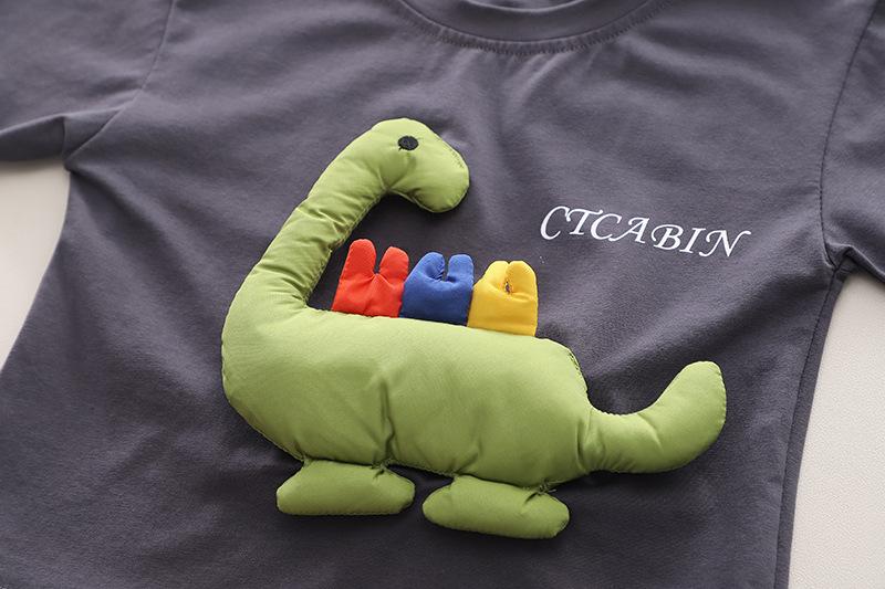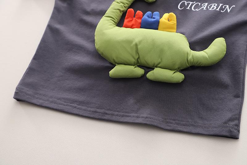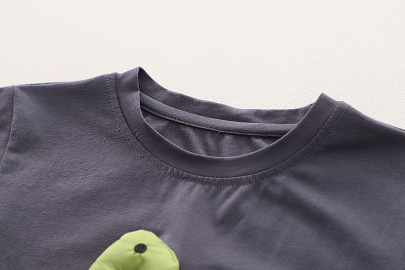 Three-dimensional color dinosaur short-sleeved suit dark gray, Three-dimensional color dinosaur short sleeve s...