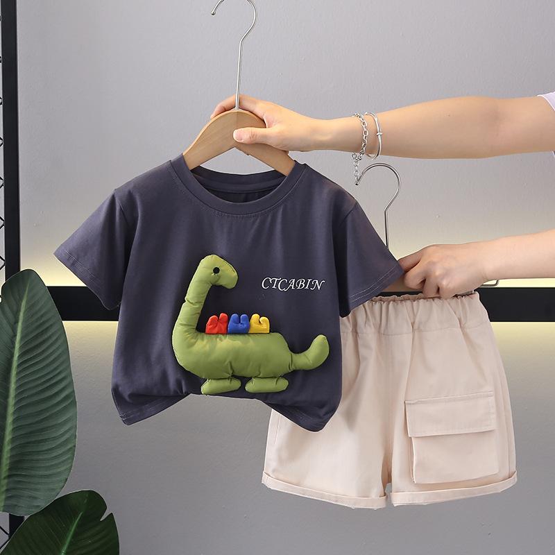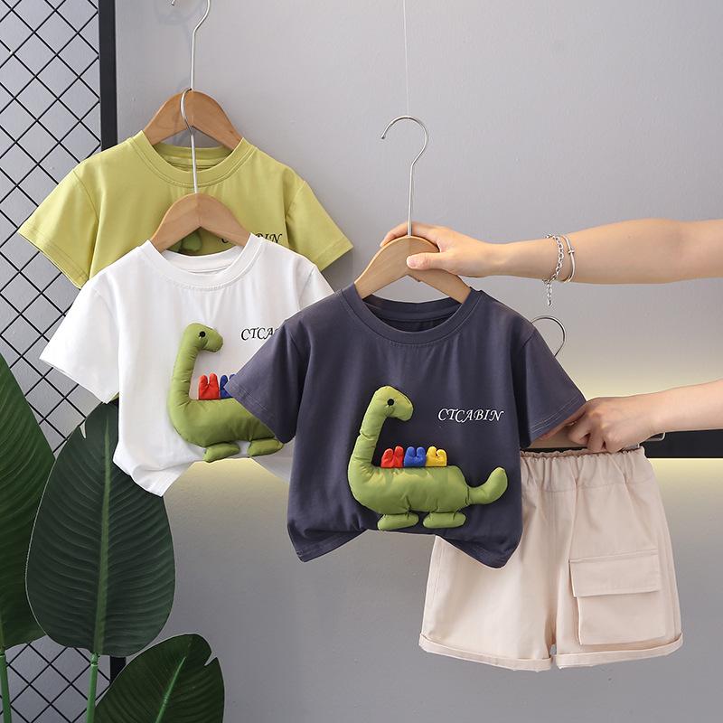 Traje de manga corta para niño, ropa de verano de estilo occidental para niños, ropa de verano para bebé con dinosaurios en color tridimensional, guapo de un año