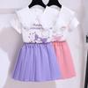 Conjunto de dos piezas de falda plisada JK informal para niñas, traje de verano para niñas, nuevo estilo universitario, vestido de verano de moda de manga corta.