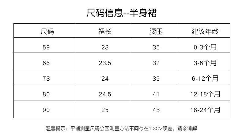 59(0-3 months), 66(3-6 months), 73(6-12 months), 80(12-18 months), 90(18-24 months)