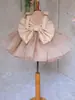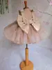 Vestido infantil, vestido infantil, estilo europeo y americano, color champán, falda de malla abullonada, vestido de princesa sin mangas con lazo
