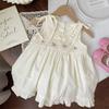 Vestido de verano sin mangas para niñas, nuevo estilo de verano, estilo occidental, costuras de malla blanca, falda para niñas, vestido de princesa para bebés.