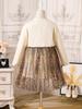 En stock Vestido para niñas con estampado de leopardo, vestido de princesa de malla para niños, nuevo vestido de manga larga con falda empalmada para niños