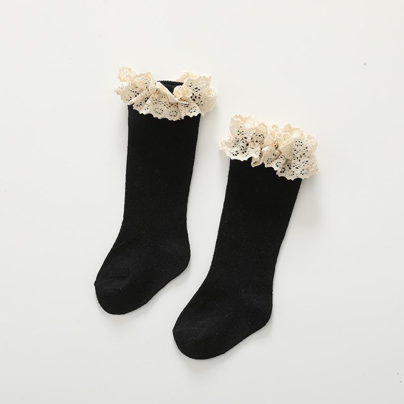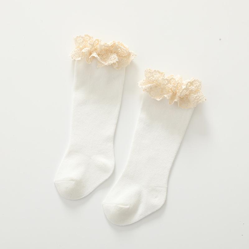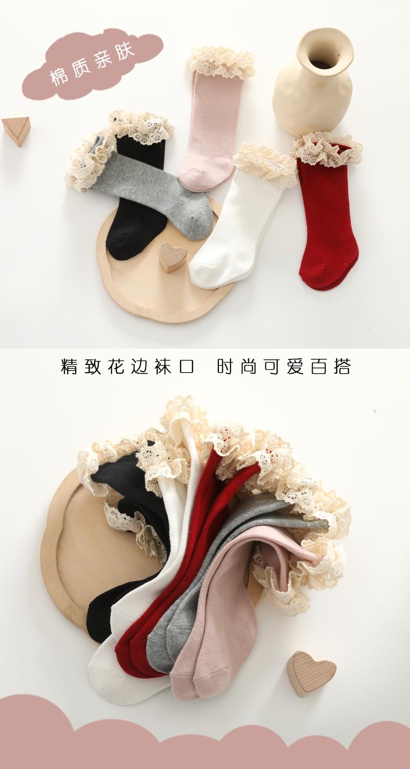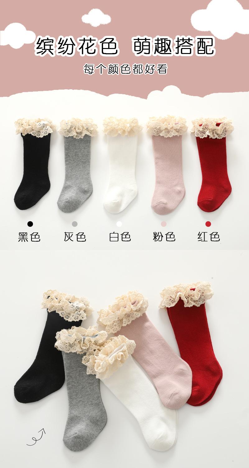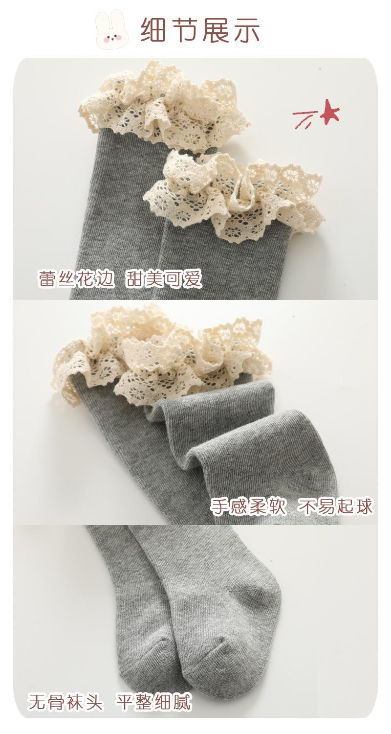 Calcetines de encaje para niñas de primavera y otoño, calcetines de algodón de tubo medio y largo para bebés, medias de viento de princesa para niñas.
