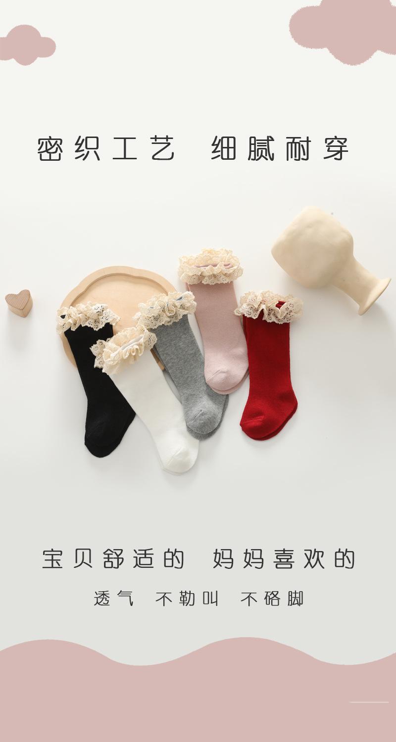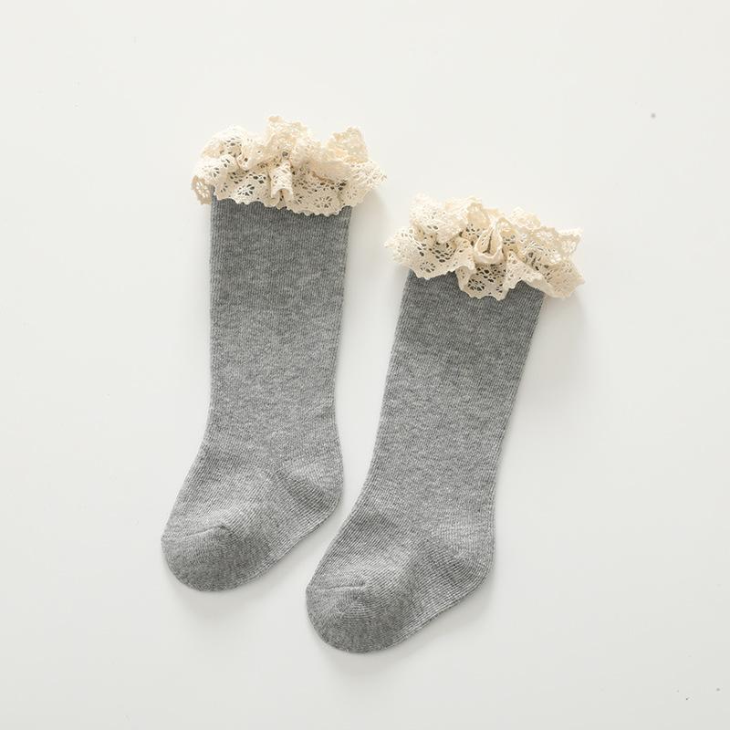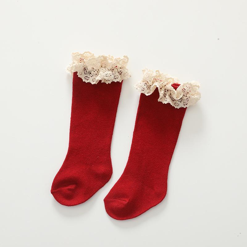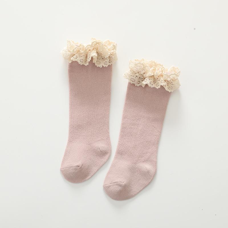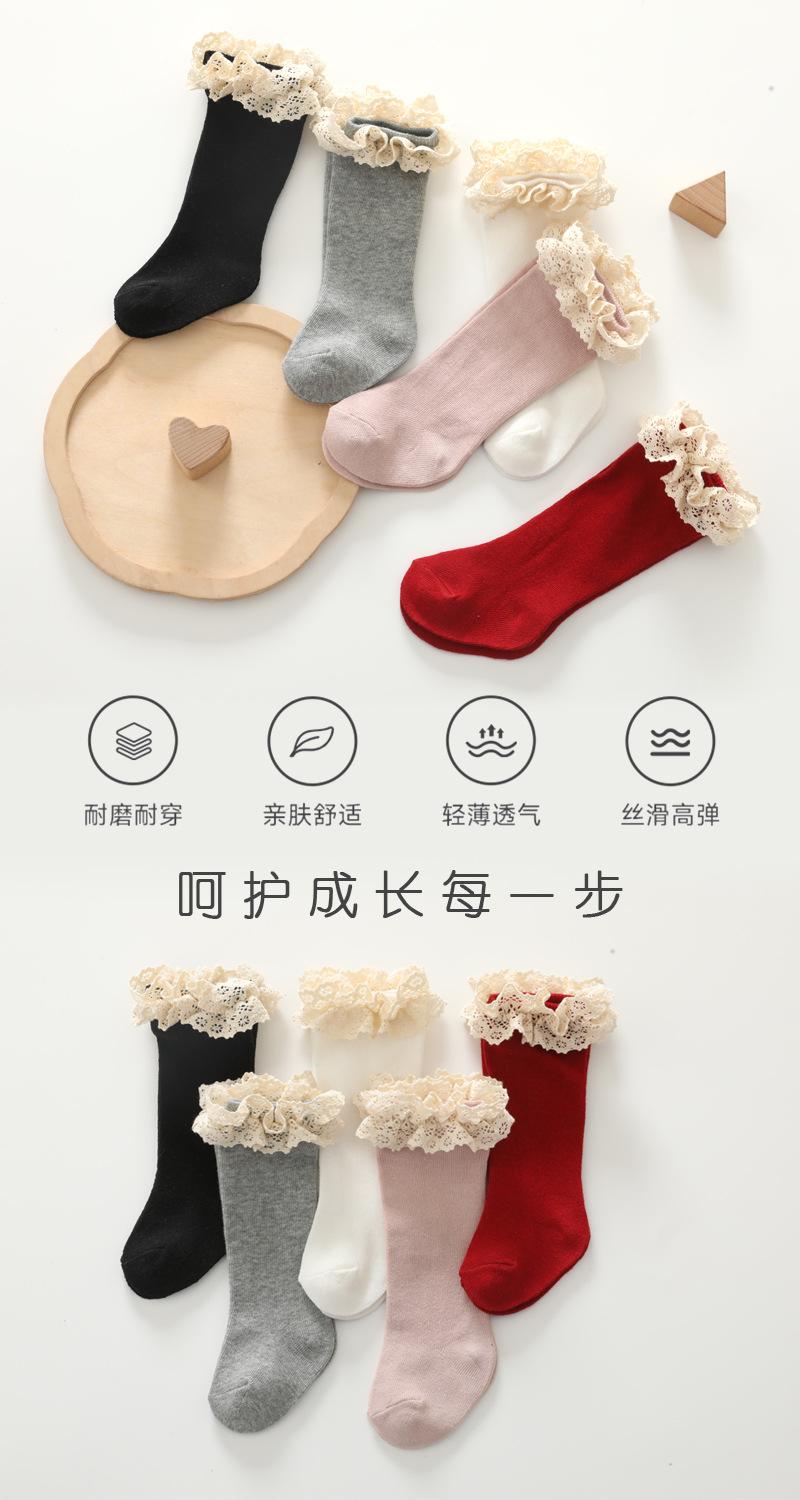 Calcetines de encaje para niñas de primavera y otoño, calcetines de algodón de tubo medio y largo para bebés, medias de viento de princesa para niñas.