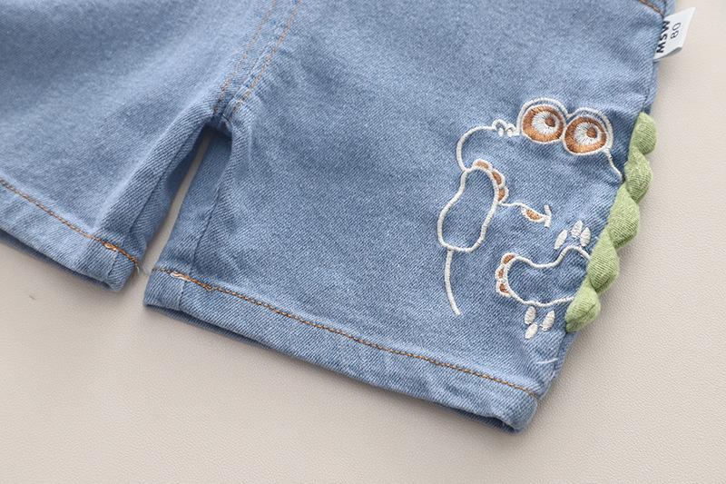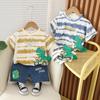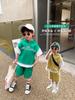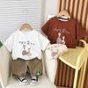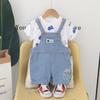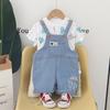 Conjunto de pantalones cortos de manga corta con tirantes de verano para niños, ropa infantil nueva, ropa infantil de estilo occidental, conjunto de moda de dos piezas con dibujos animados para bebés