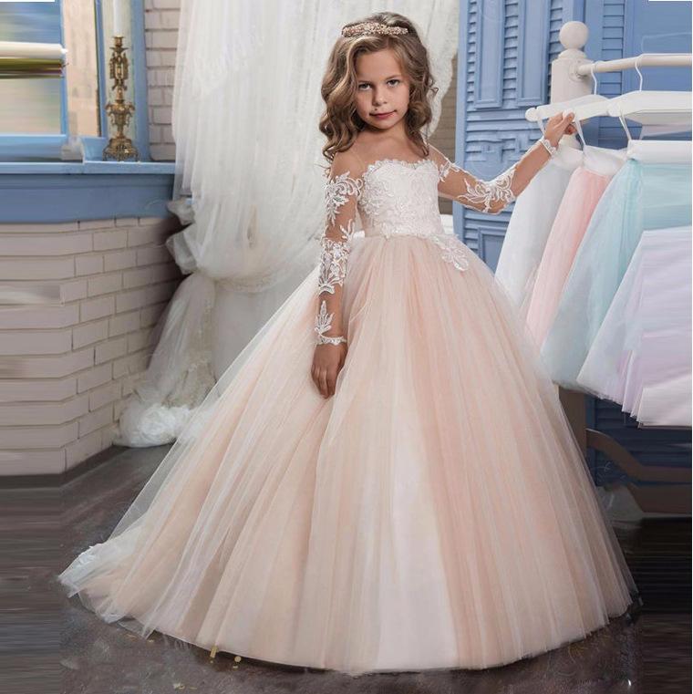 Falda Tutú para Niñas Transfronteriza Amazon Vestido de Noche Vestido de Boda para Niña de las Flores Vestido de Princesa Largo hasta el Piso Actuación de Piano