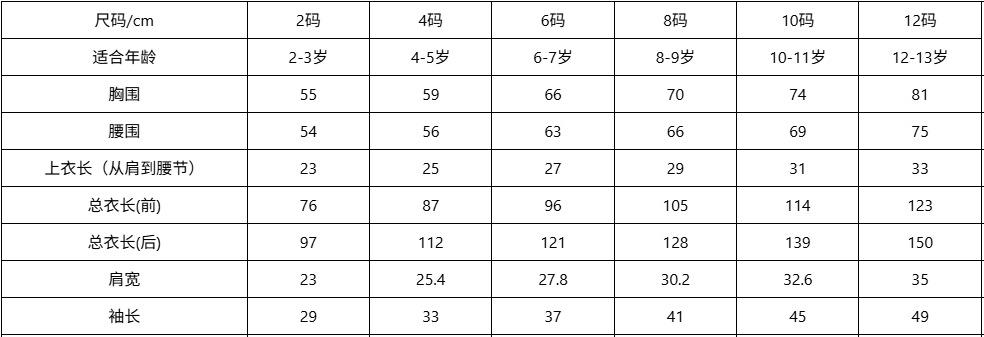 2-3Y, 4-5Y, 6-7Y, 8-9Y, 10-11Y, 12-13Y