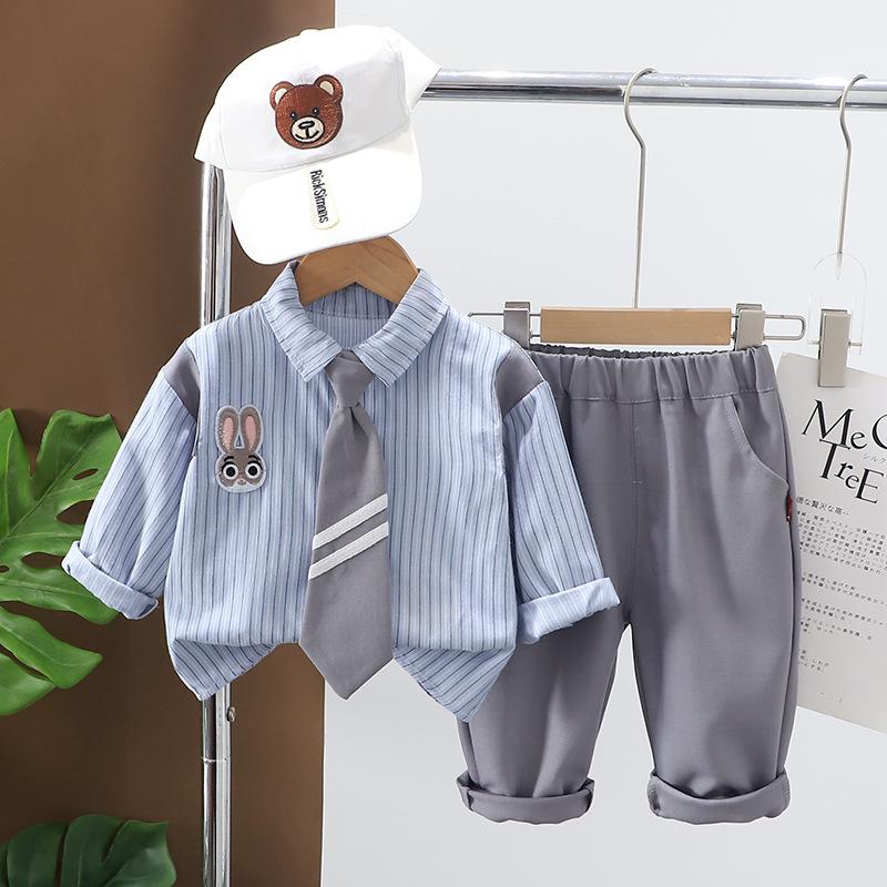 Traje de niño Otoño 2024 Nueva camisa de estilo occidental para niños de primavera y otoño Conjunto de dos piezas informal para bebé guapo