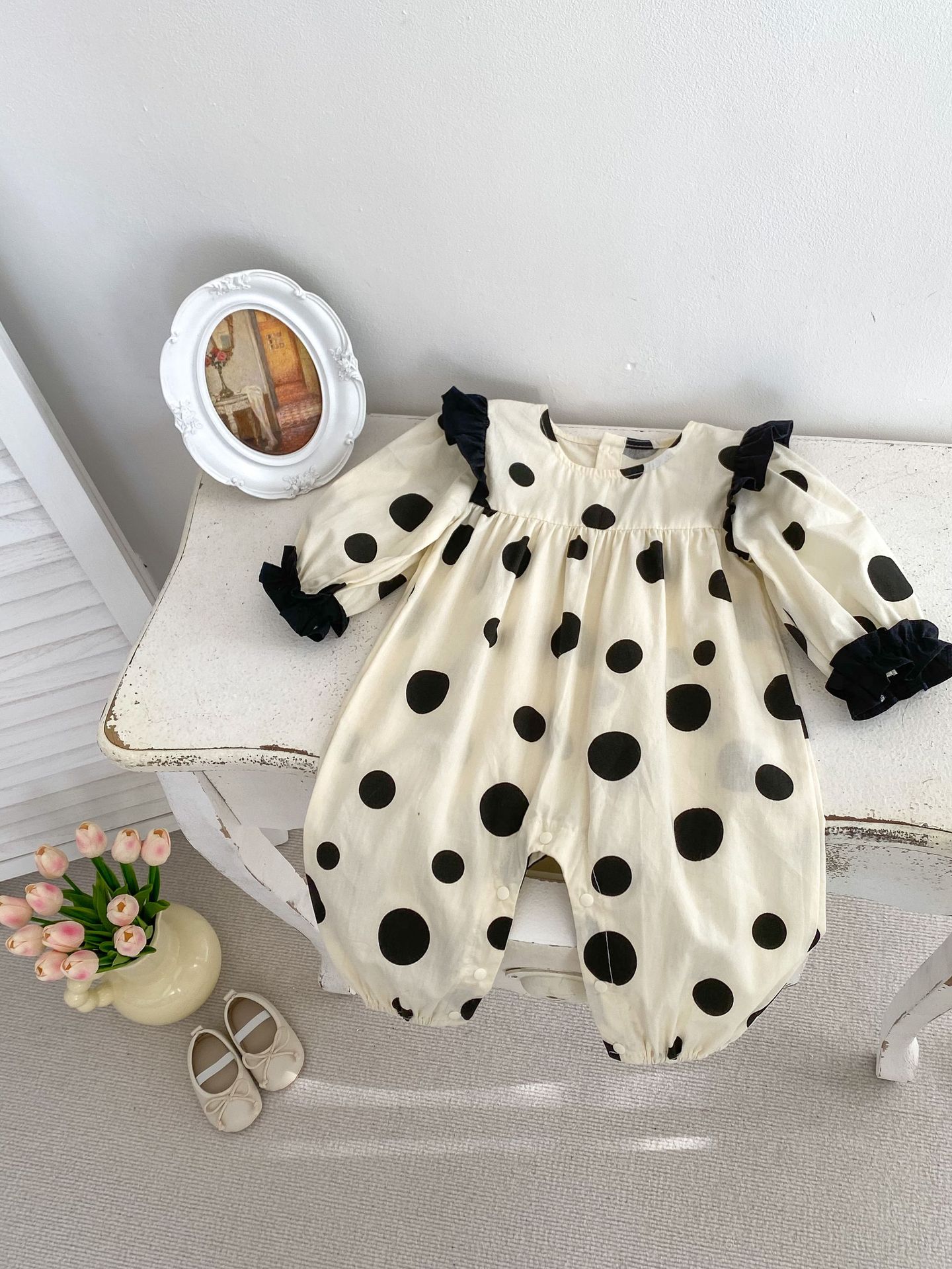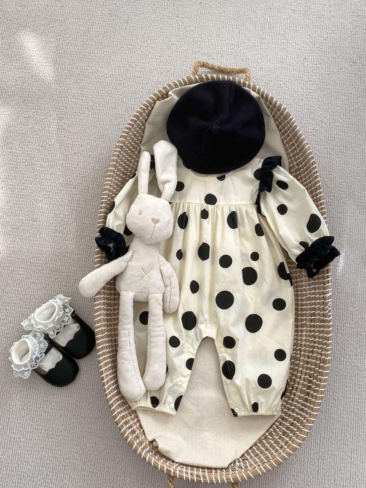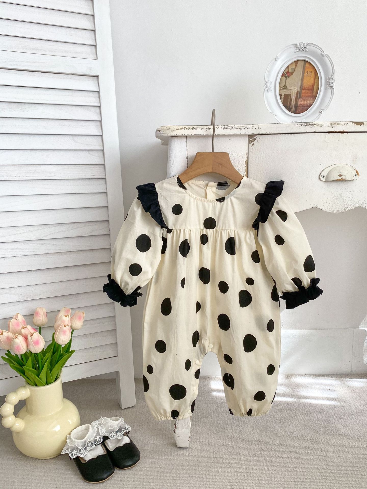 Mono de primavera para bebé, estilo coreano, con lunares, manga larga, ajustado, para niña