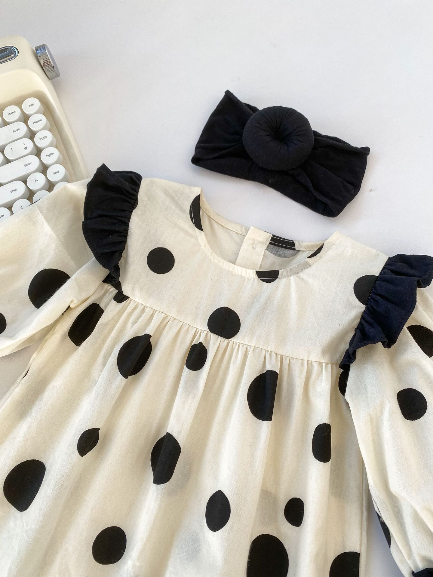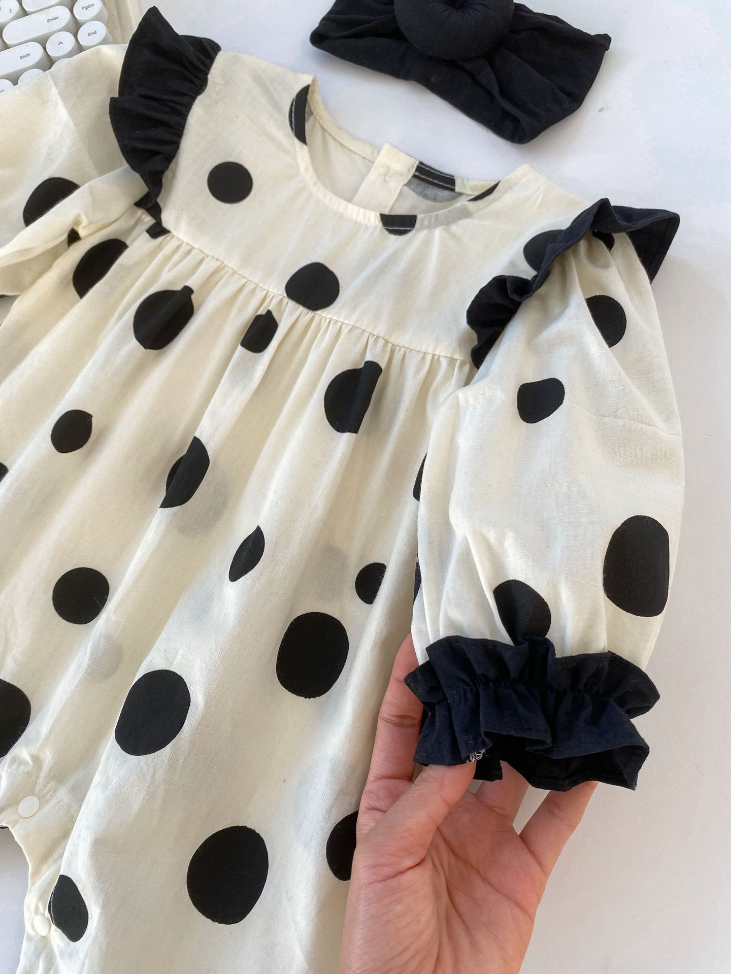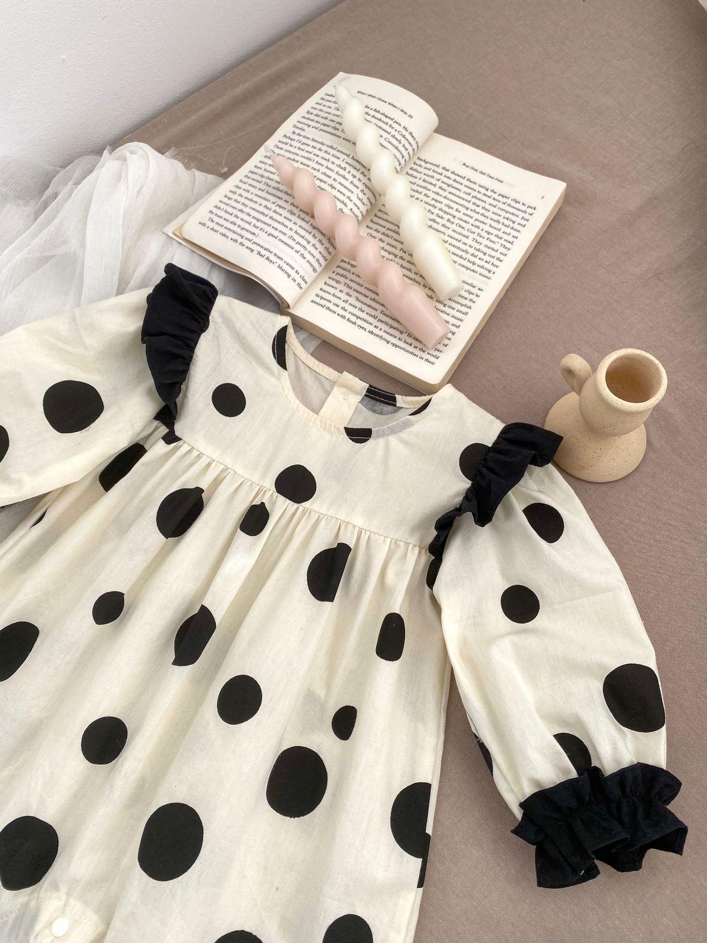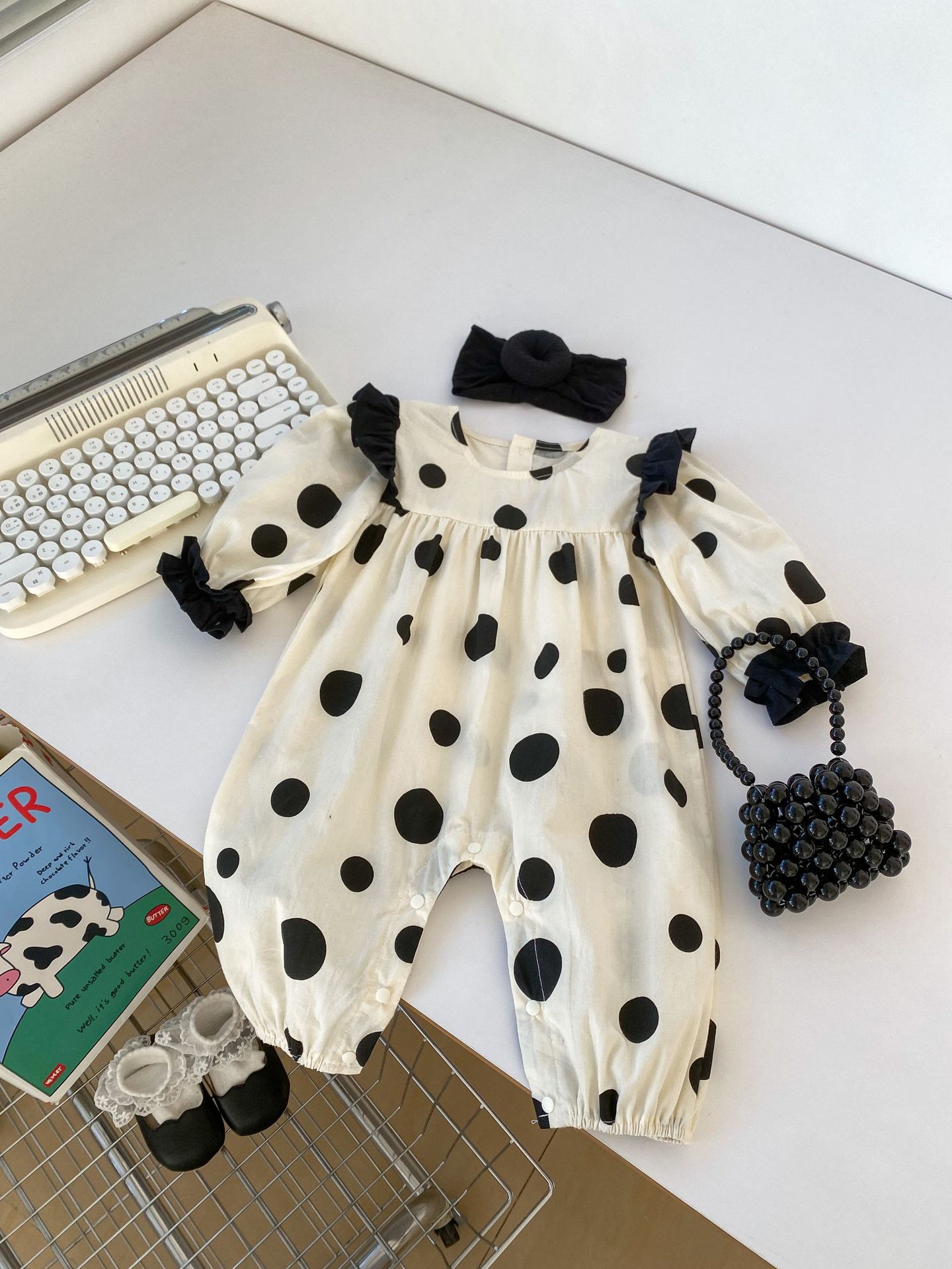 Mono de primavera para bebé, estilo coreano, con lunares, manga larga, ajustado, para niña