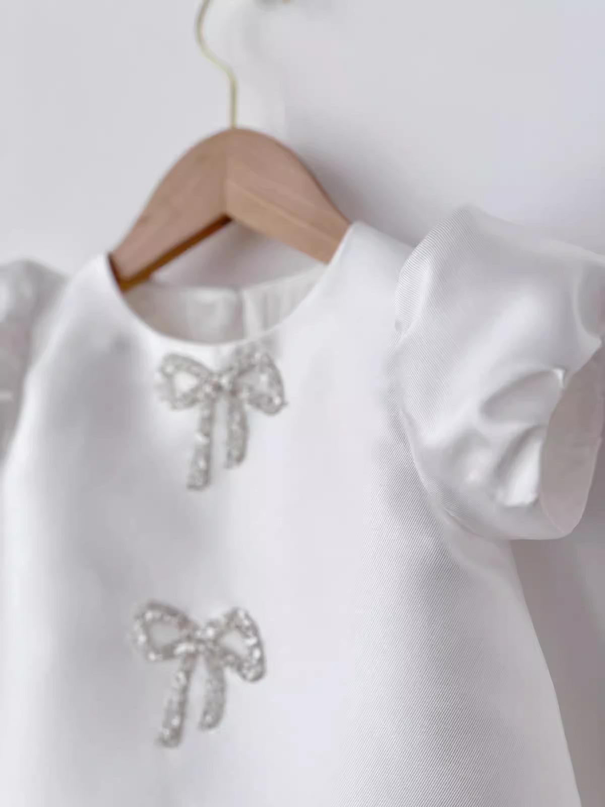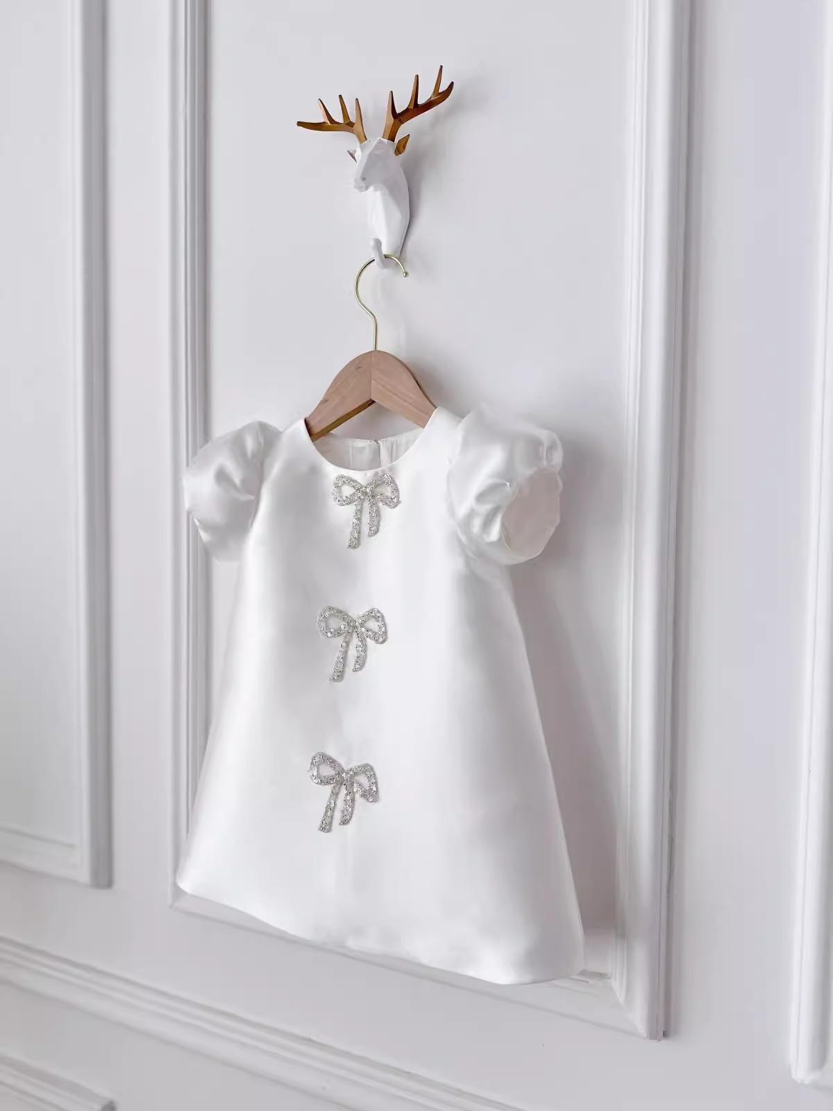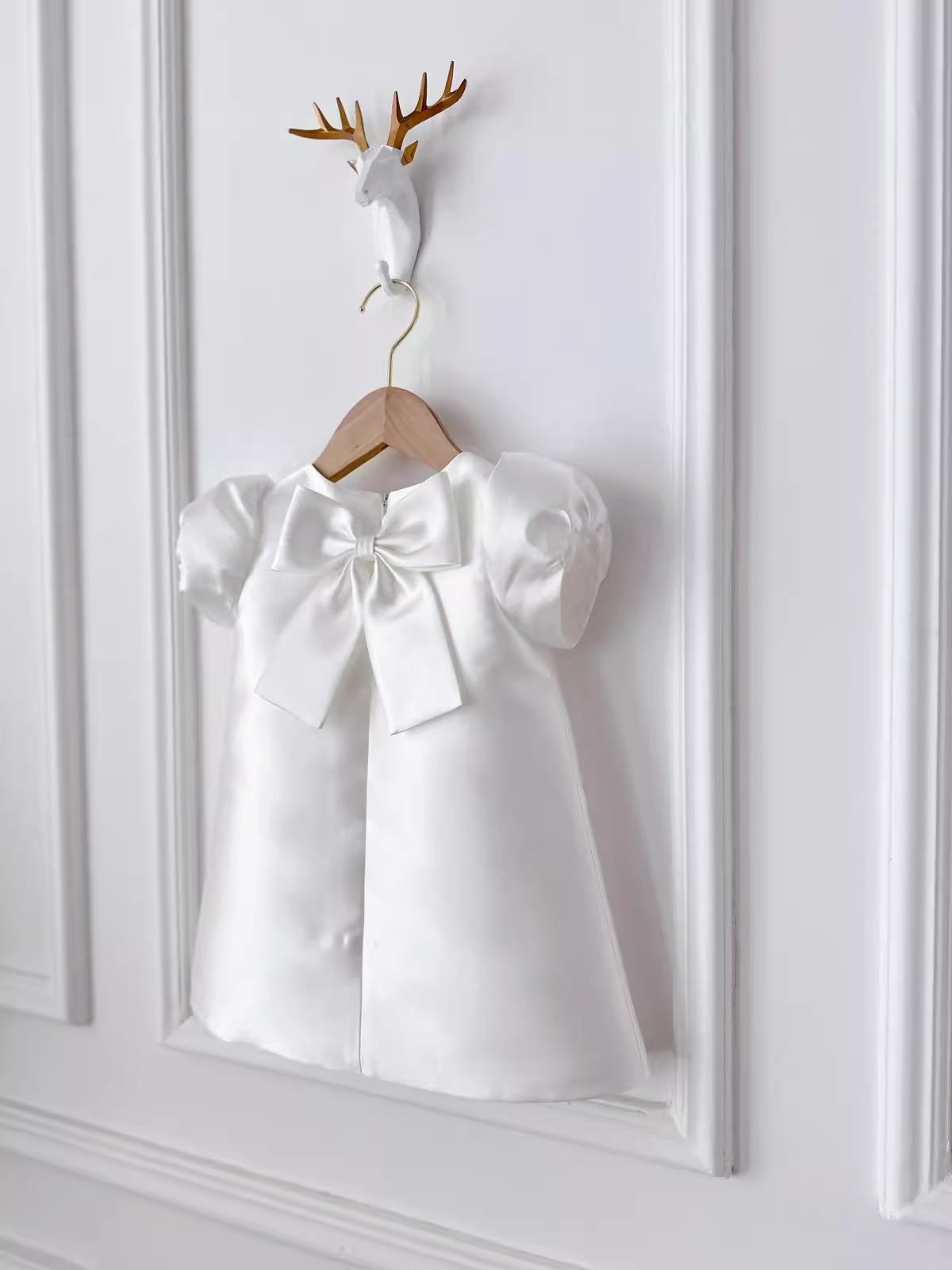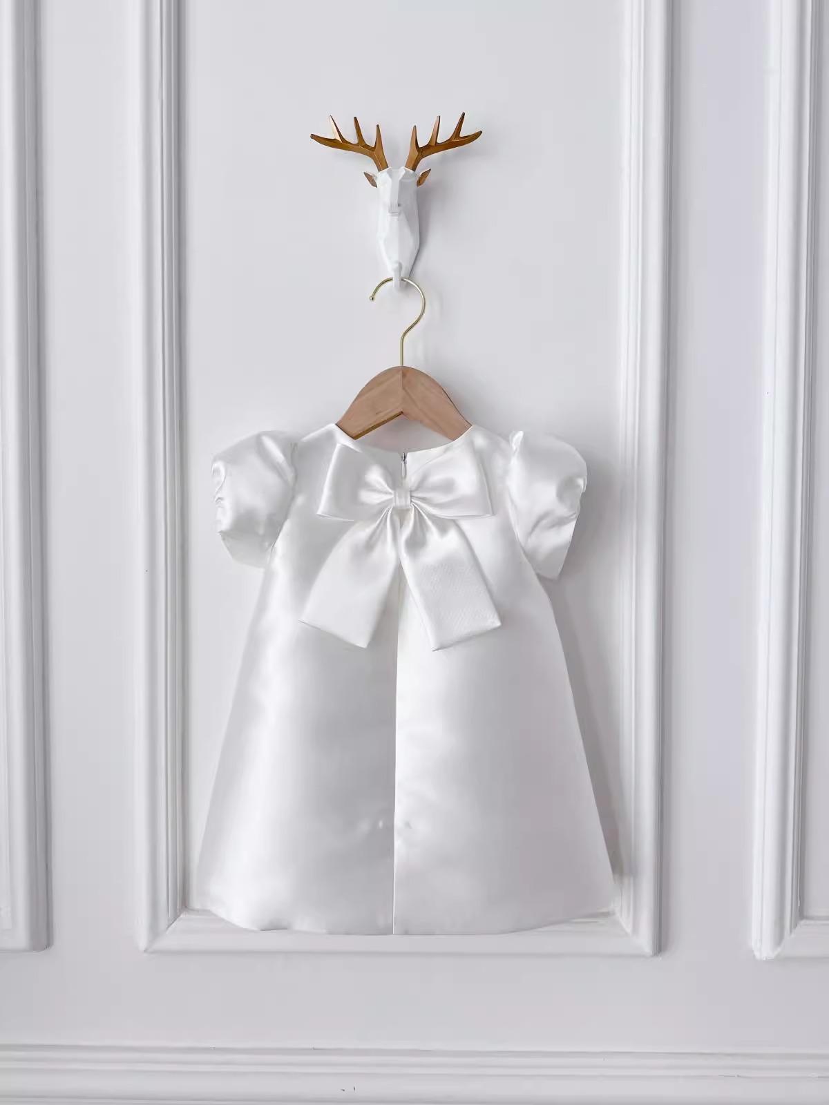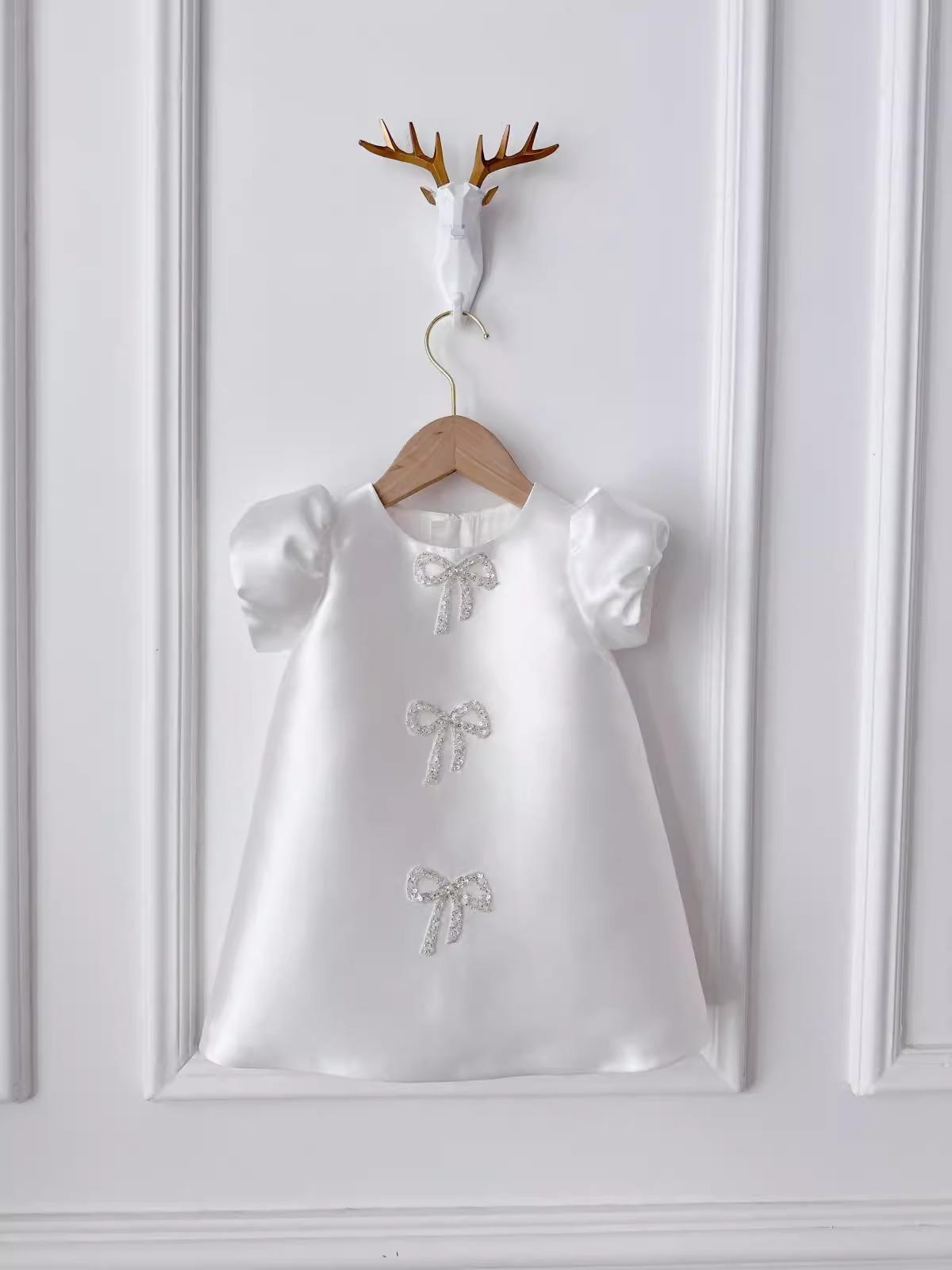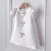 Vestido infantil estilo coreano 2025, vestido de verano con mangas abullonadas para niña bebé de un año, vestido de princesa blanco para cumpleaños