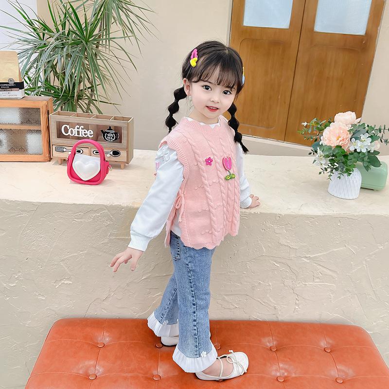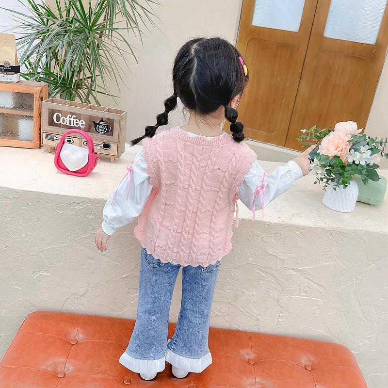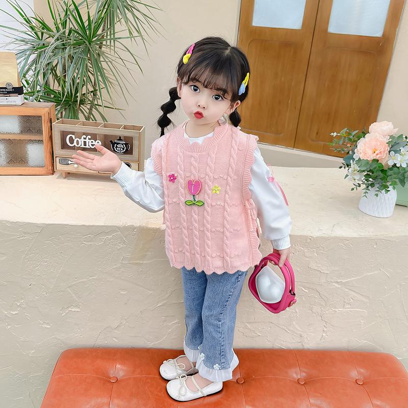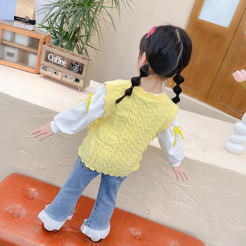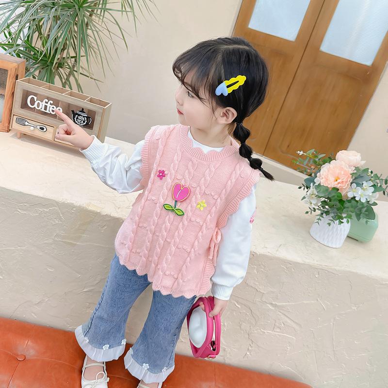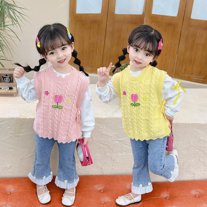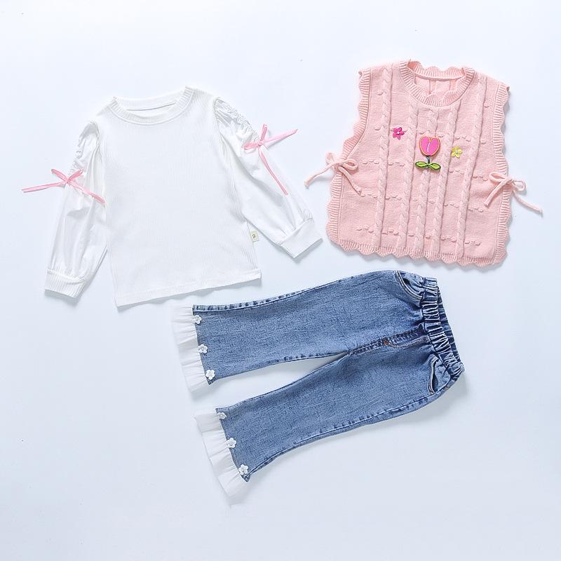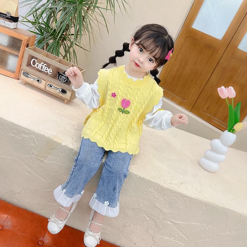 Traje de otoño para niña 2023, nuevo y elegante conjunto de tres piezas para bebés, moda de primavera y otoño para niños.