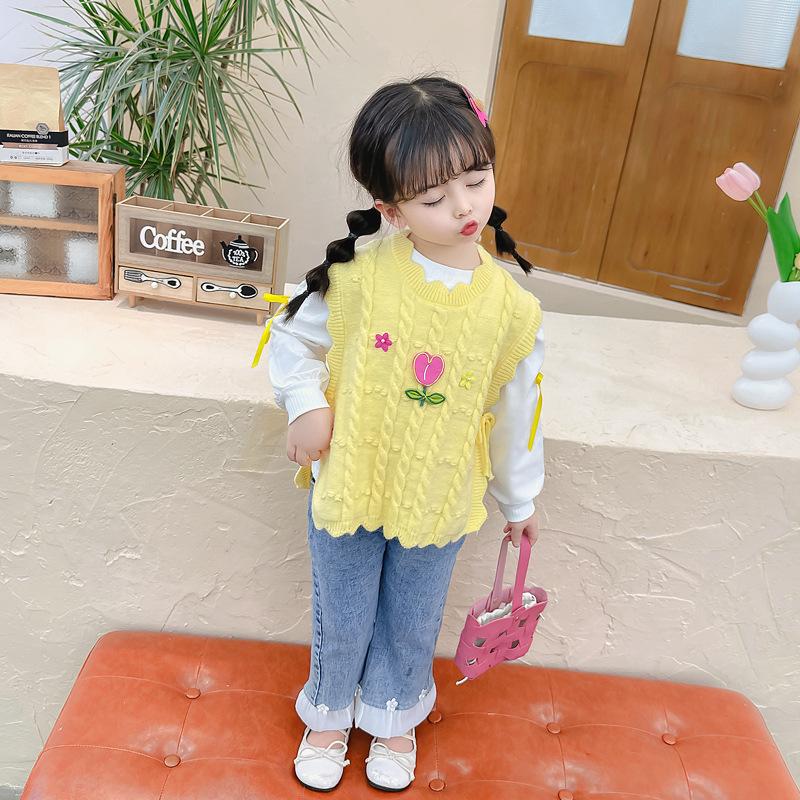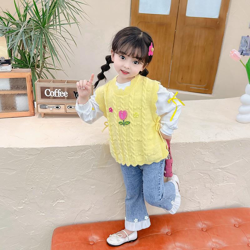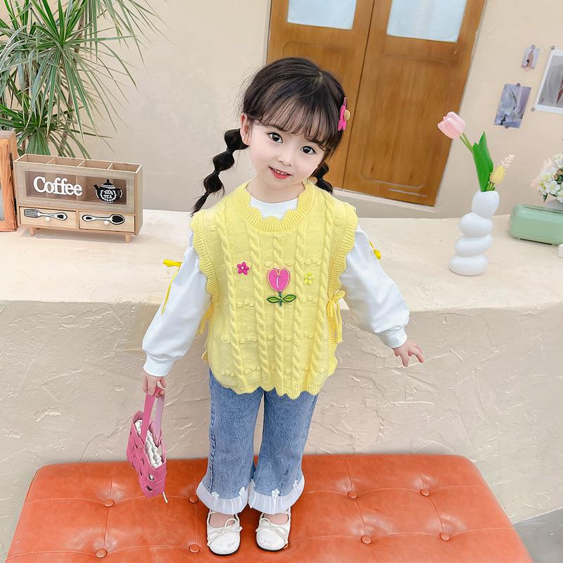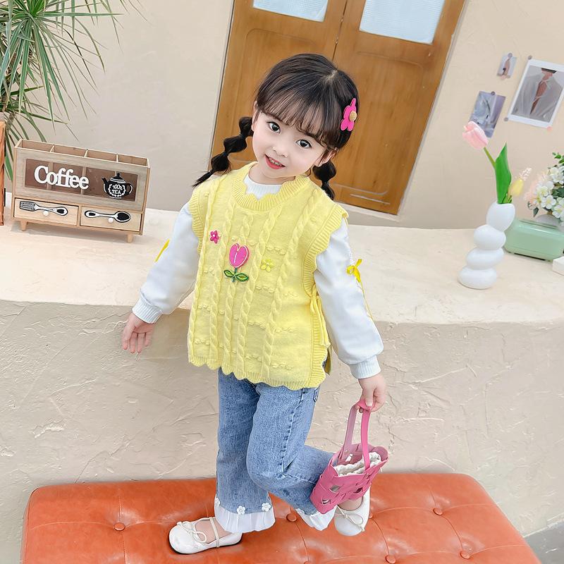 Three-dimensional small Flower sweater set Pink, Three-dimensional small Flower sweater set yellow