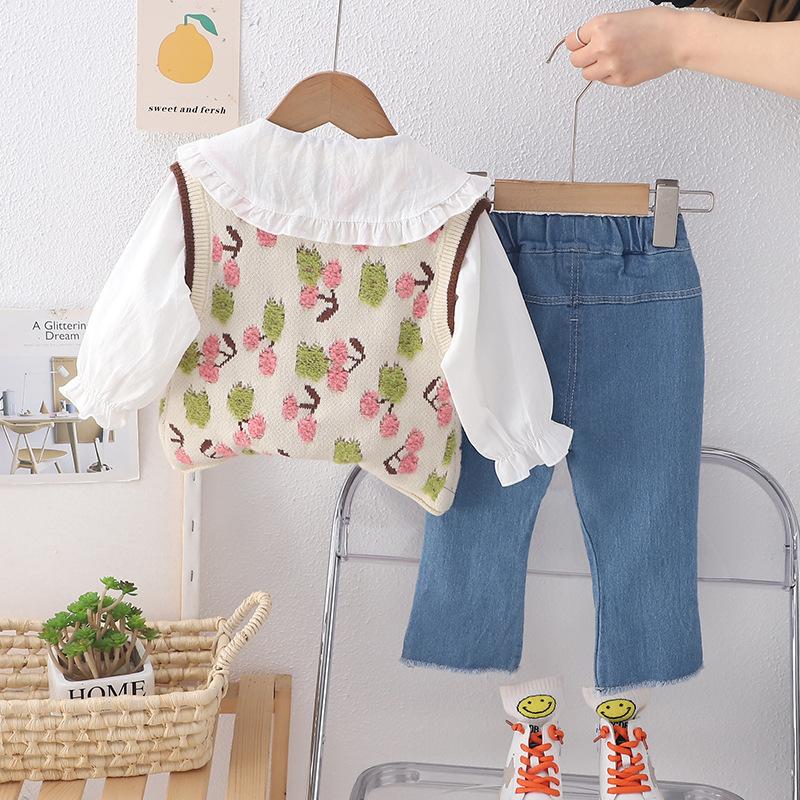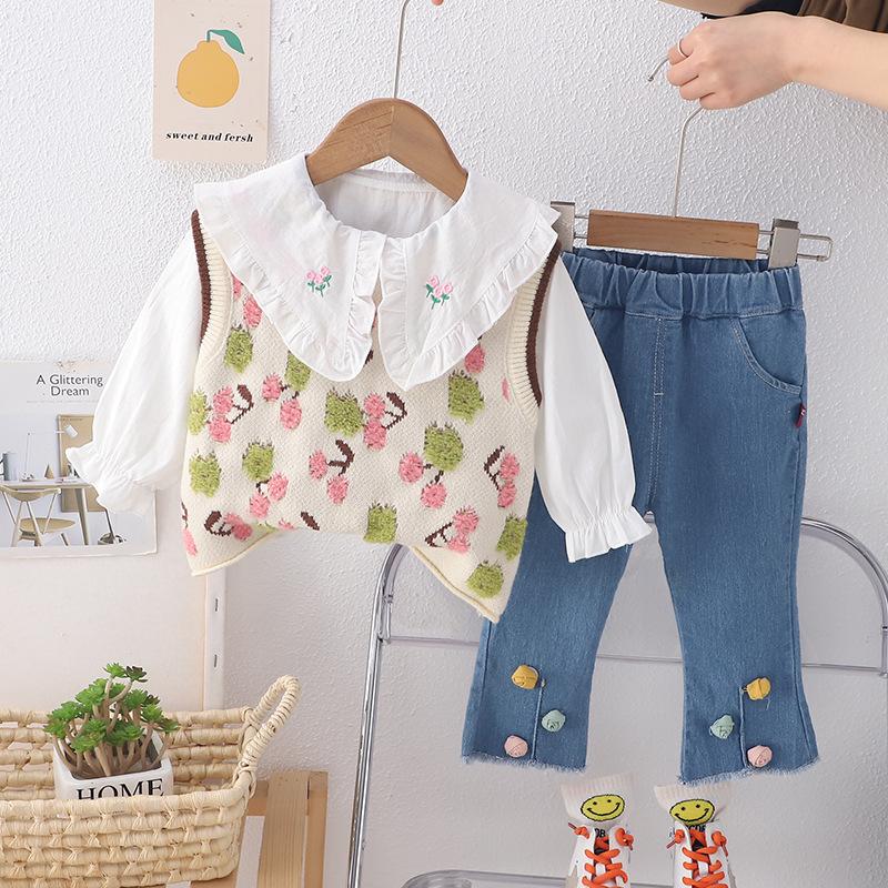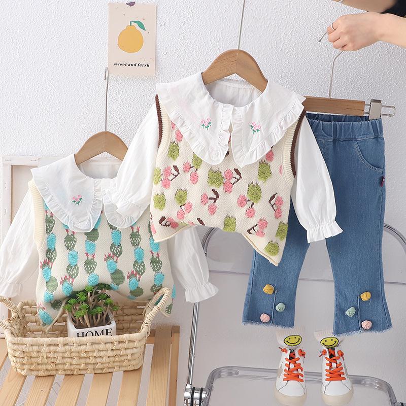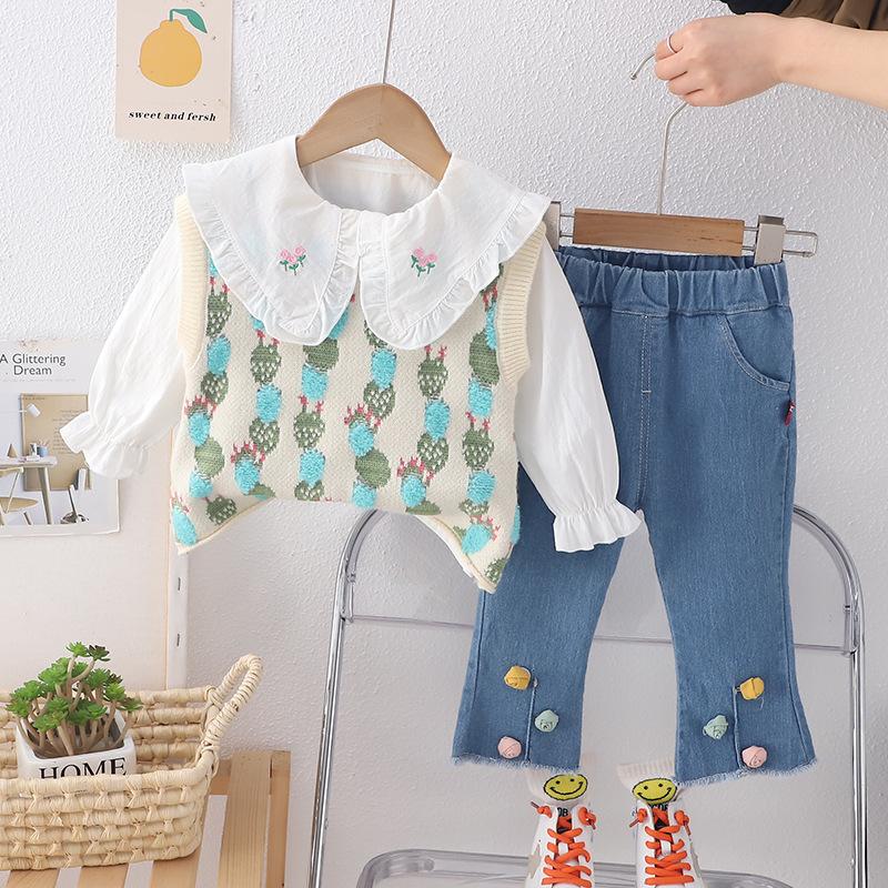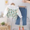 Traje de tres piezas con chaleco estampado para niña primavera 2024 nuevo bebé de moda para niña primavera y otoño