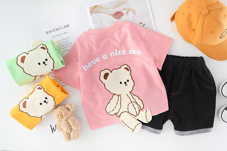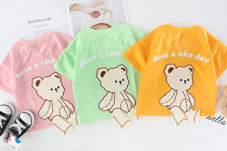 Traje de oso de espalda de manga corta para niños y niñas de 1-2-3-4 años, ropa de verano 2022, nueva tendencia de ropa infantil